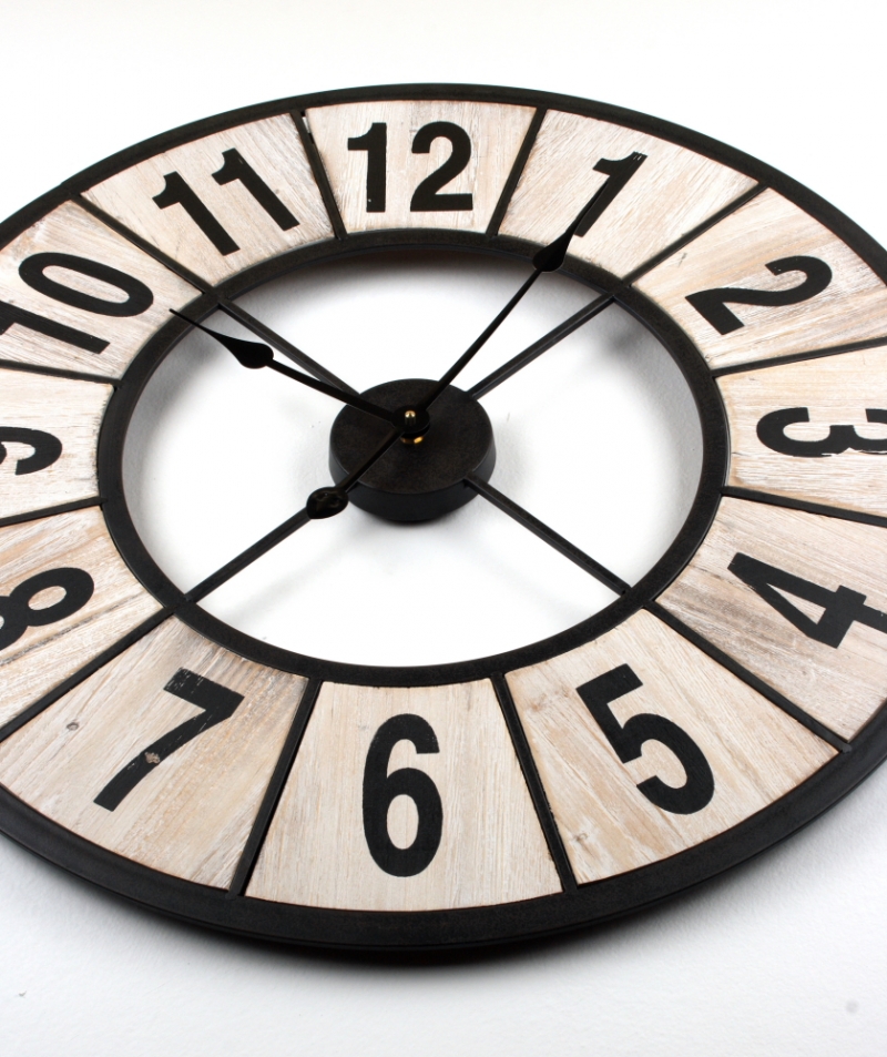 Drevené industriálnej hodiny 70cm pre milovníkov čistého a jednoduchého dizajnu bez zbytočných "kudrdlinek".