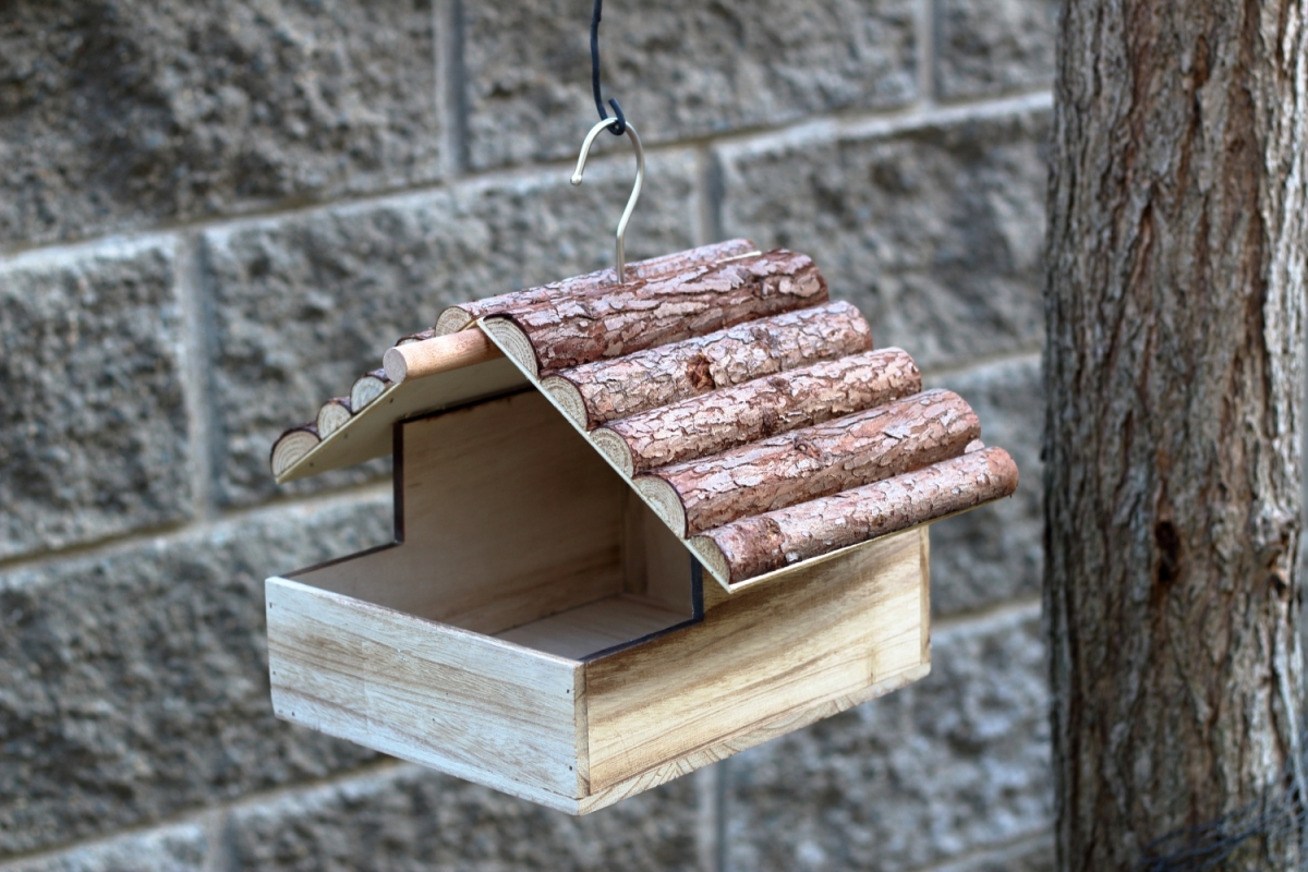 Drevené kŕmidlo pre vtáky môžete postaviť na rovný povrch alebo vďaka skobe na strieške zavesiť. Potom už stačí len nasypať dnu obilie a pozorovať, aké druhy k vám zavítajú.