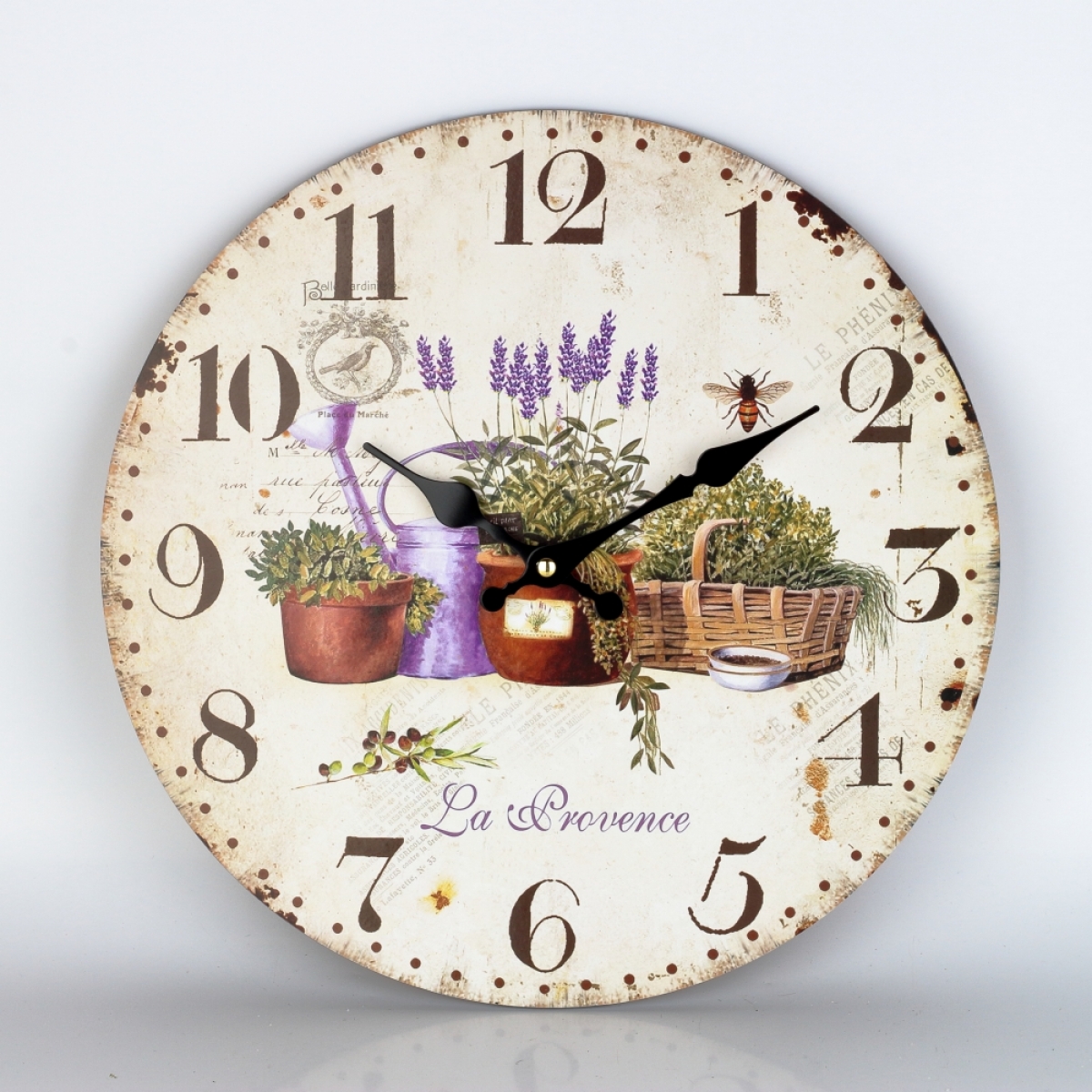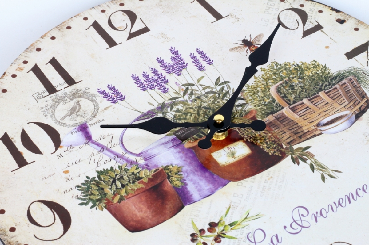 Drevené nástenné hodiny s levanduľou La Provence 34cm