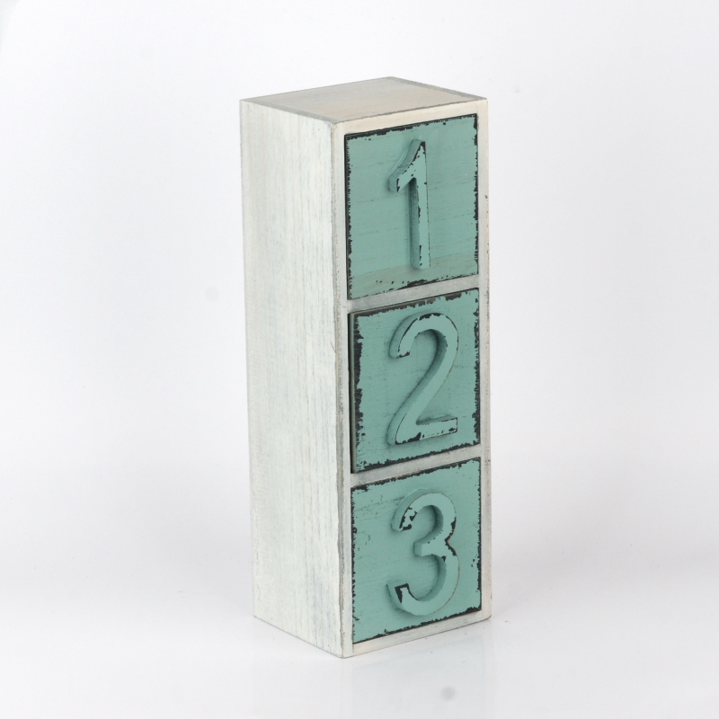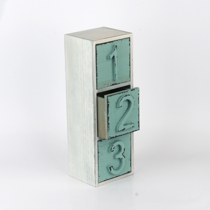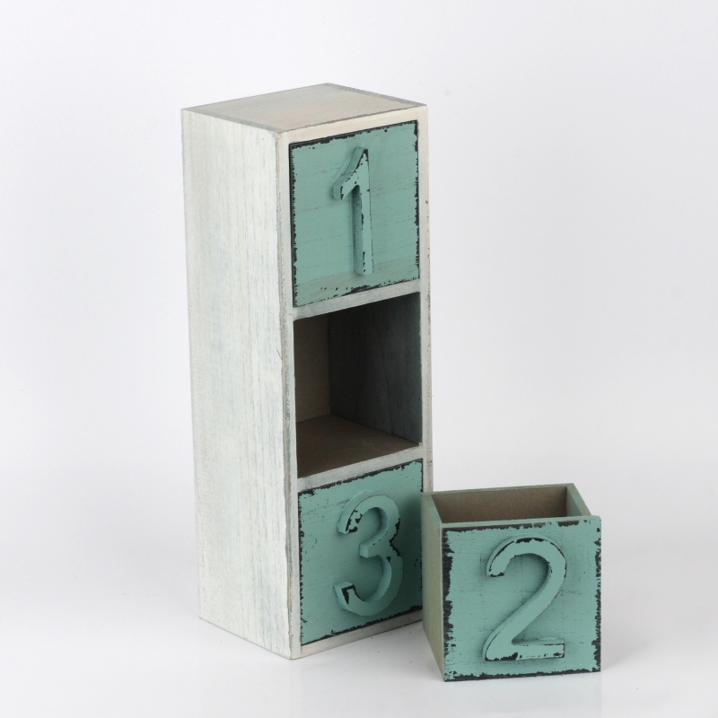 Drevené šuplíčky na drobnosti 31x12x10cm v netypické tyrkysovej farbe a číslami 1/2/3. Malý kúsok nábytku, ktorý dokáže v interiéri veľké divy.