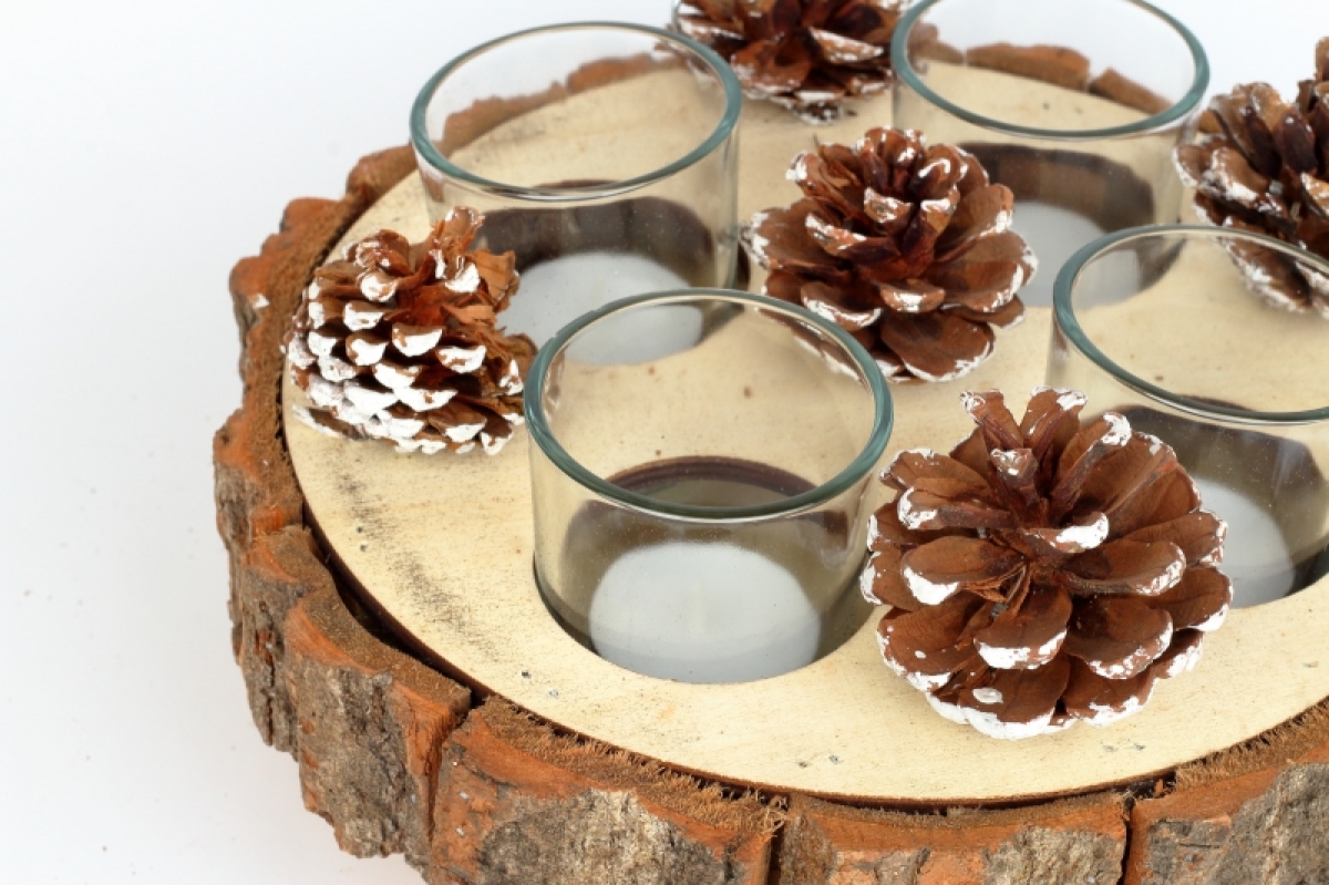 Drevený adventný svietnik na čajové sviečky.