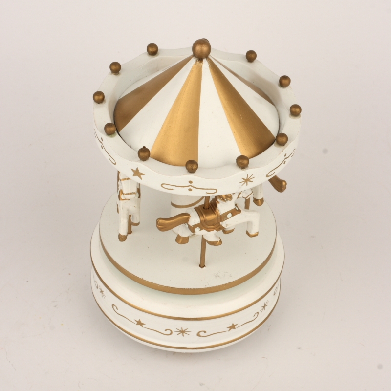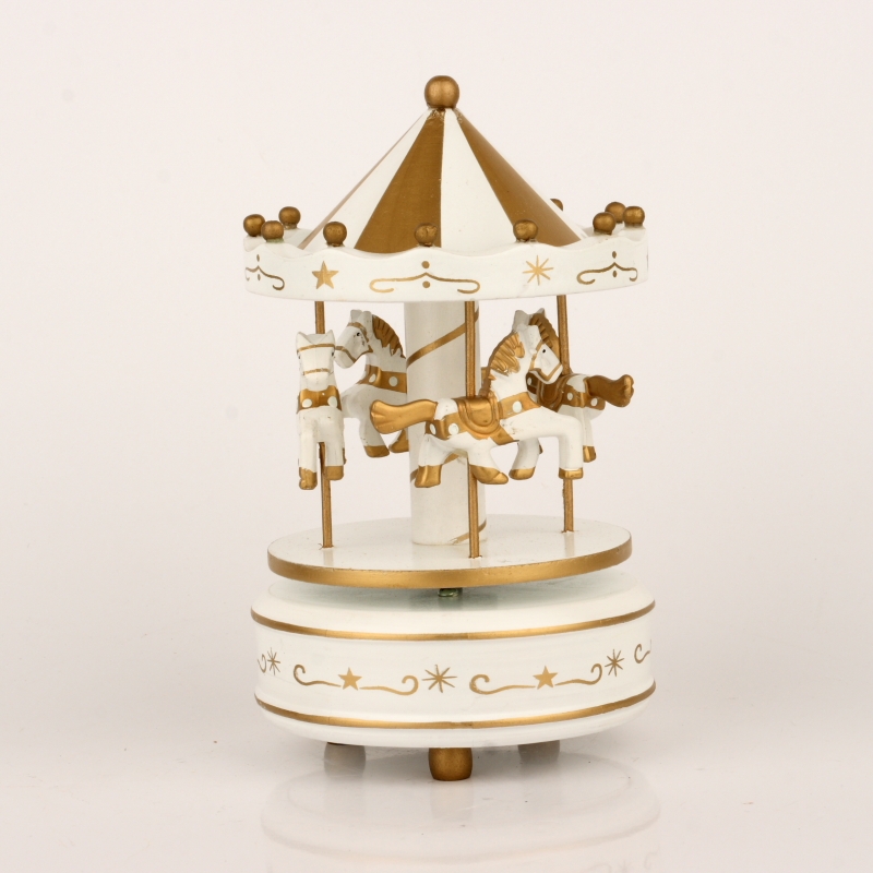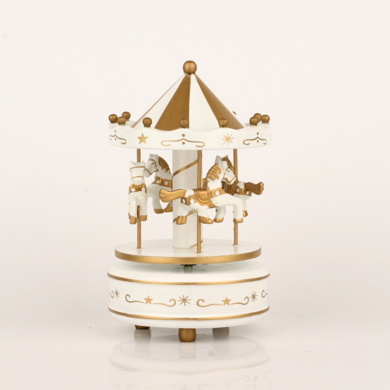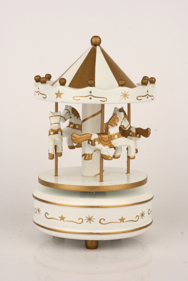Drevený hrací kolotoč bielo-zlatý 19cm