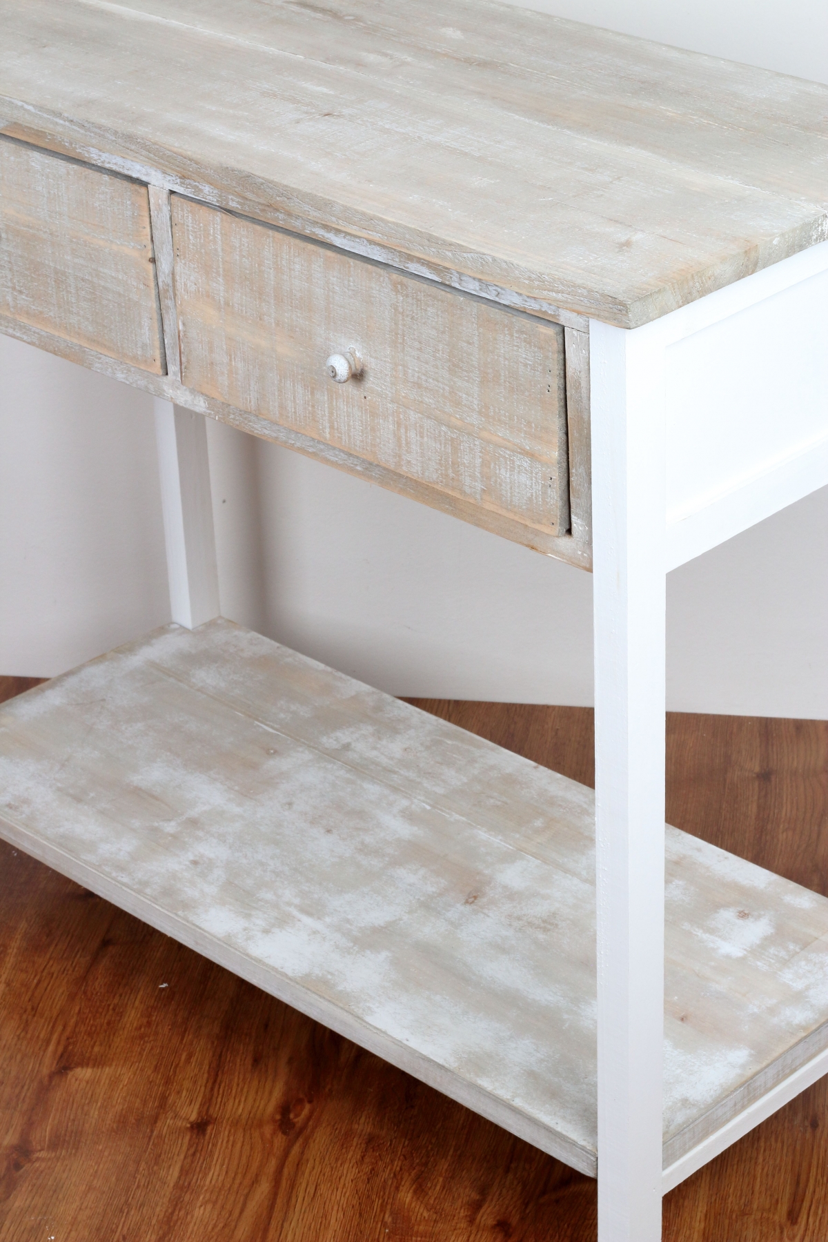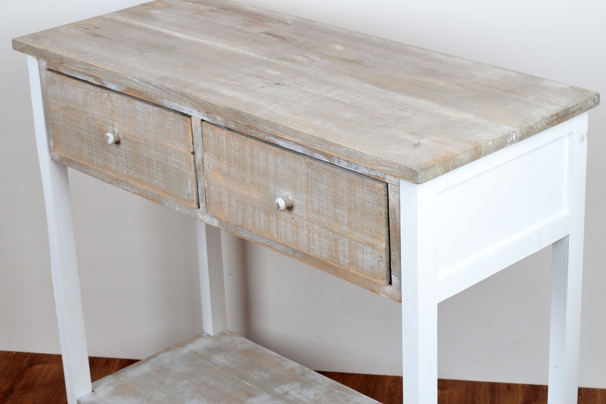 Drevený konzolový stolík s dvoma šuplíkmi 85x77x37cm pripomína ošumelá kus nábytku zo starej pôdy. Presne také kúsky ale my milujeme. Majú totiž svoje jedinečné čaro strých časov.