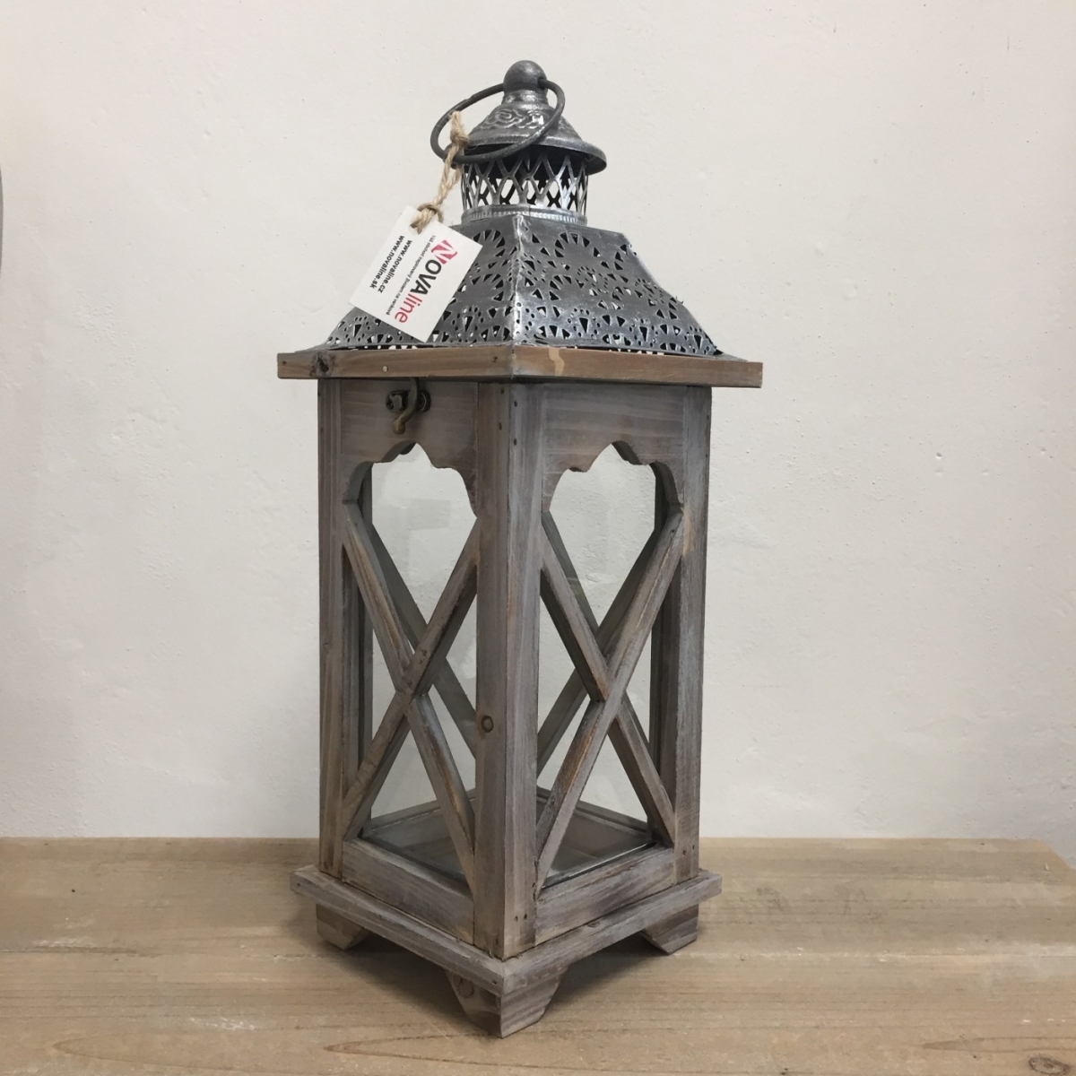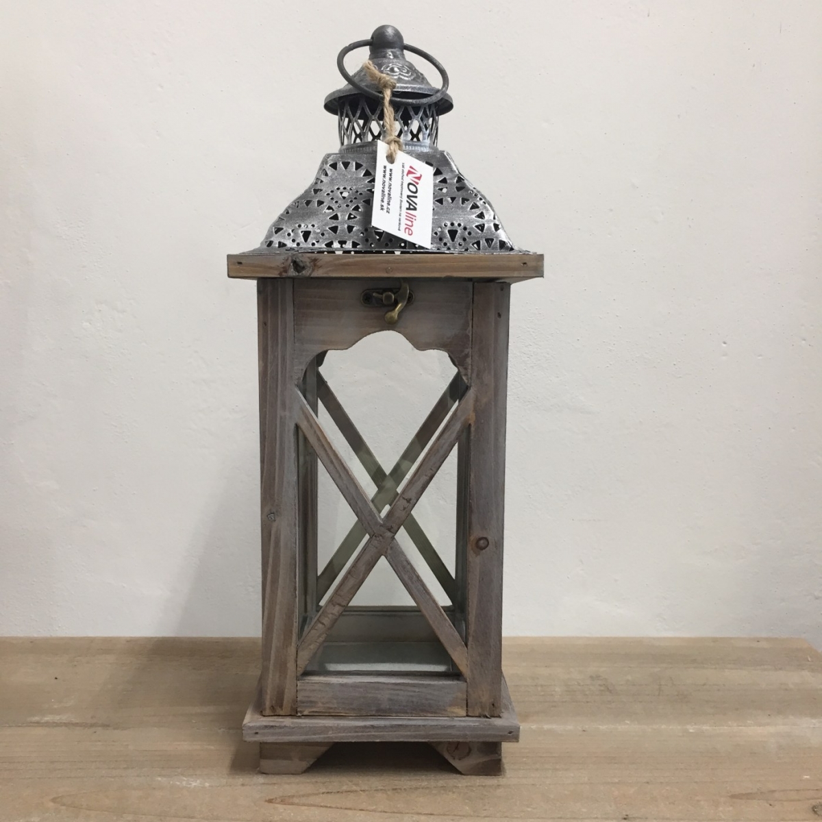 Drevený lampáš na sviečku je nádherným doplnkom na priedomí ku vchodovým dverám, na terasu, ale aj do obývacej izby. Bočné strany majú vitráže z dreva a kovová strieška je ozdobne perforovaná.