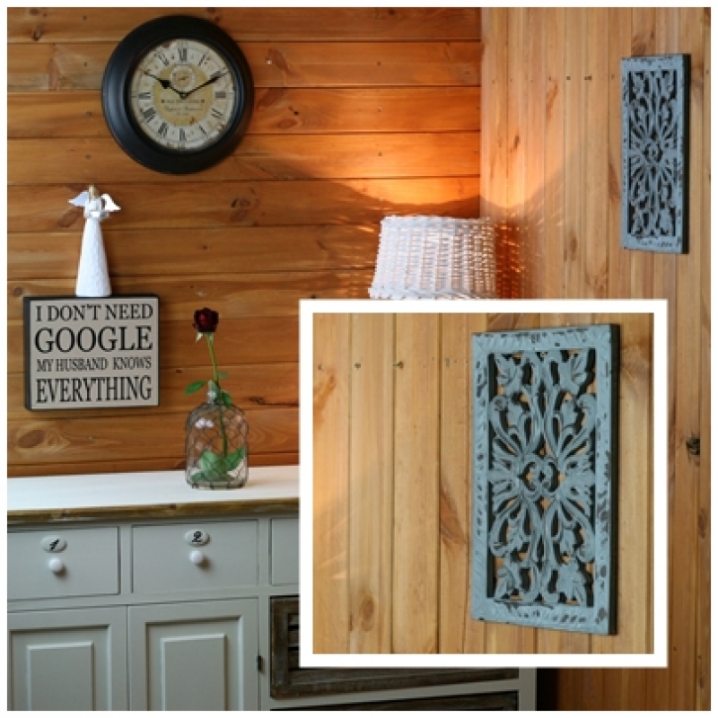 Tento z dreva vyrezávaný ozdobný panel vytvára na stene krásny "netradičné" obrazec. Dekorácia je vyrezaná z dreva s šedým náterom, ktoré je doplnené patinou. Na jednej zo strán má panel dva kovové úchyty pre jednoduché pripevnenie.