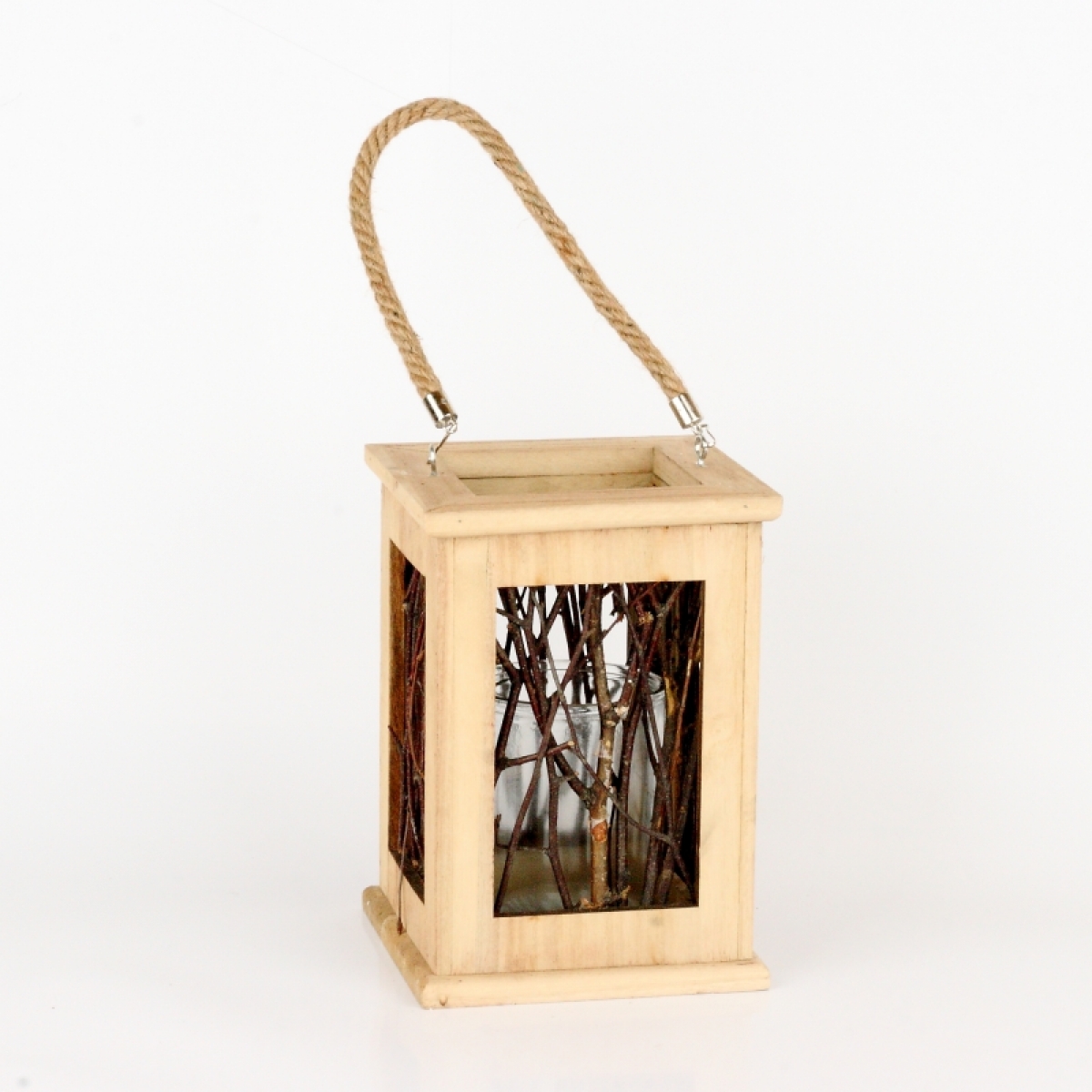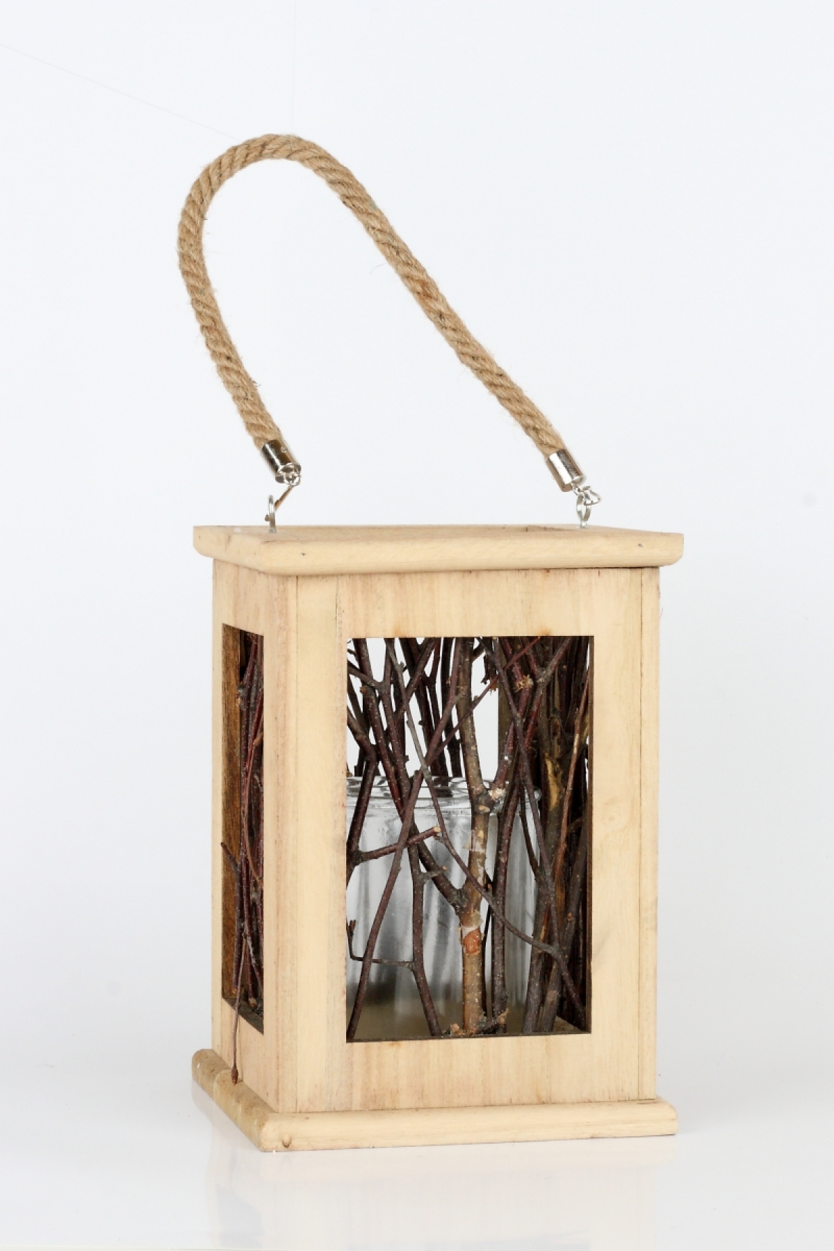 Dřevěný svícen / lucerna z větviček tmavý 23x17cm