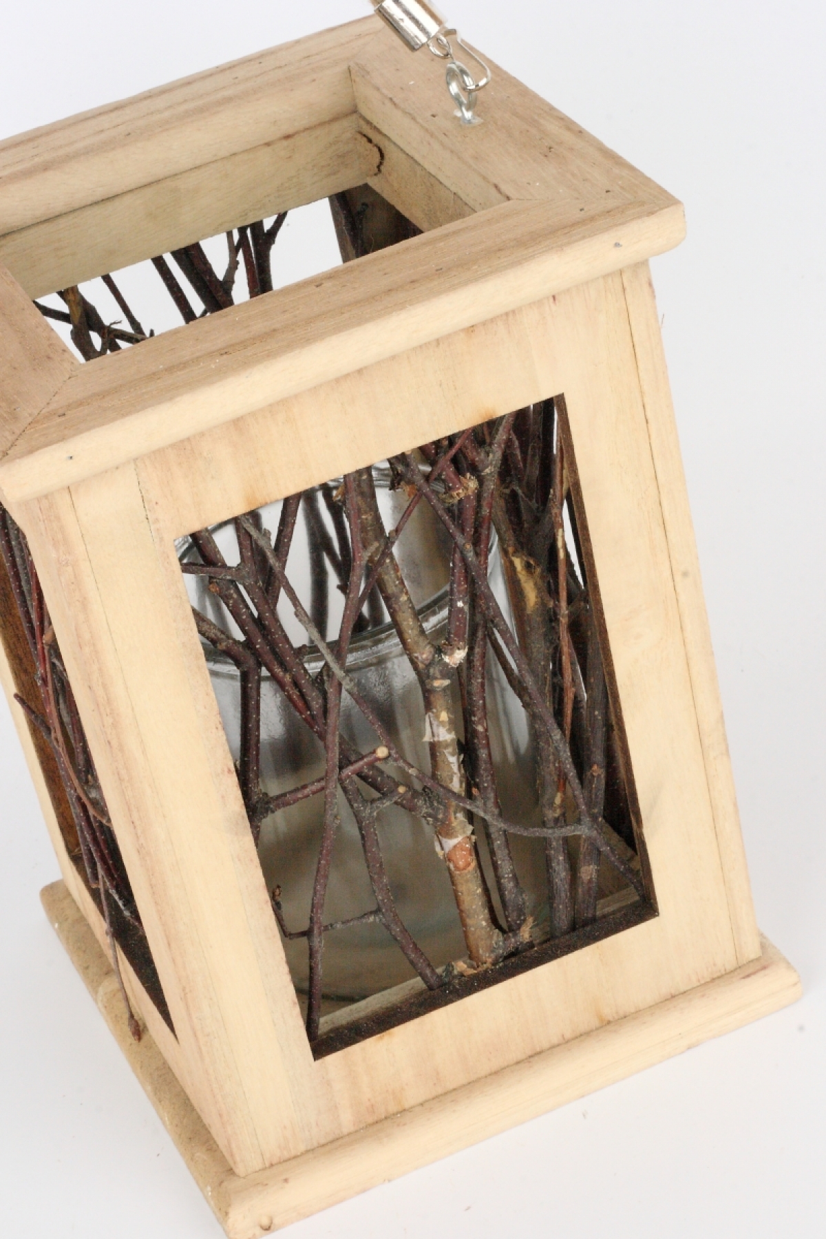 Drevený svietnik / lampáš z vetvičiek tmavý 23x17cm