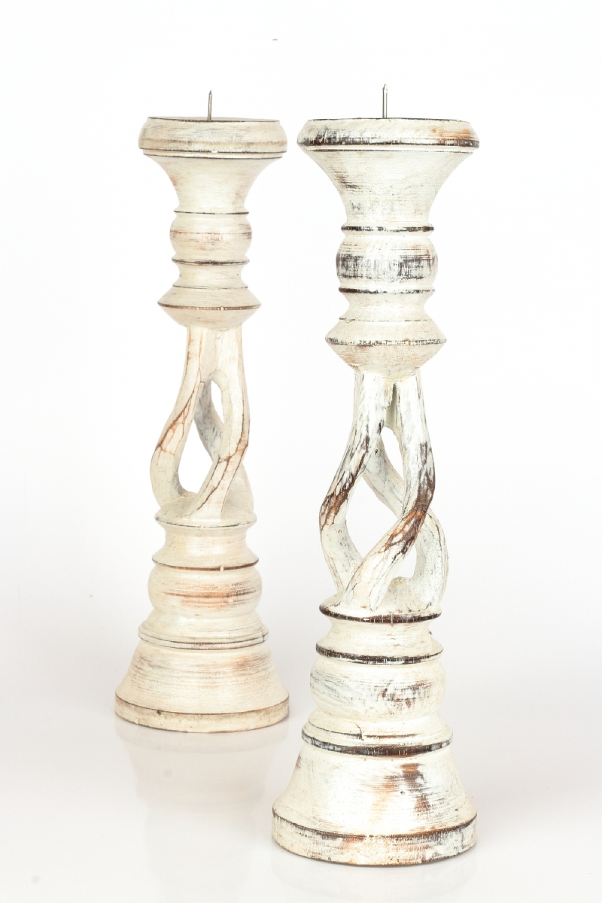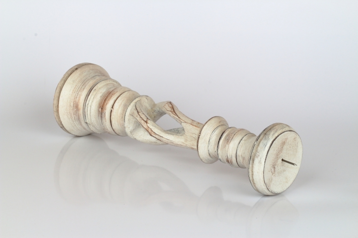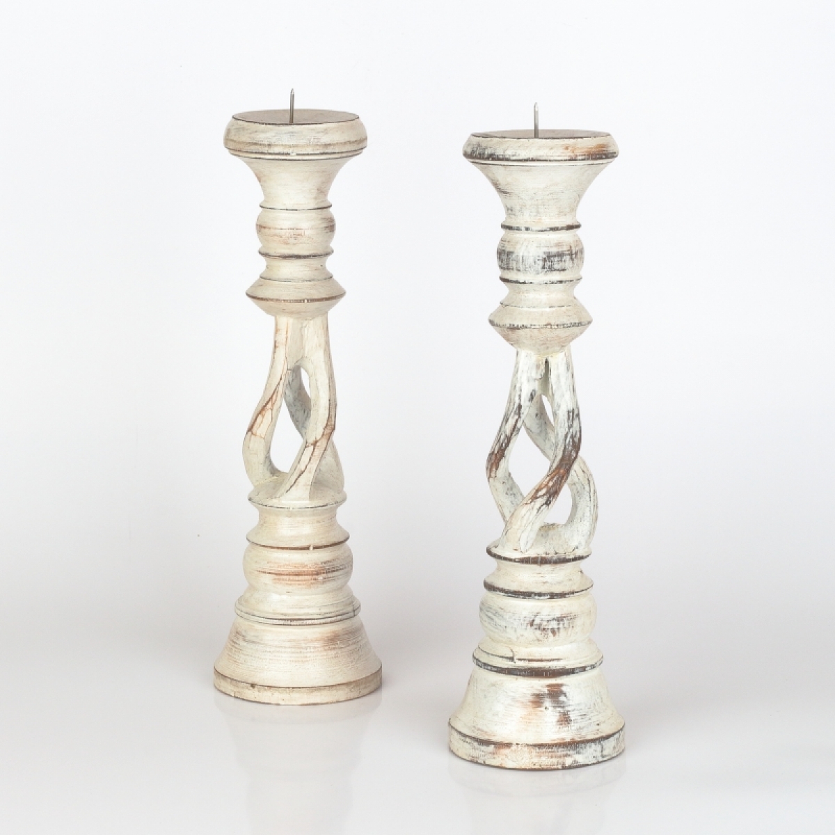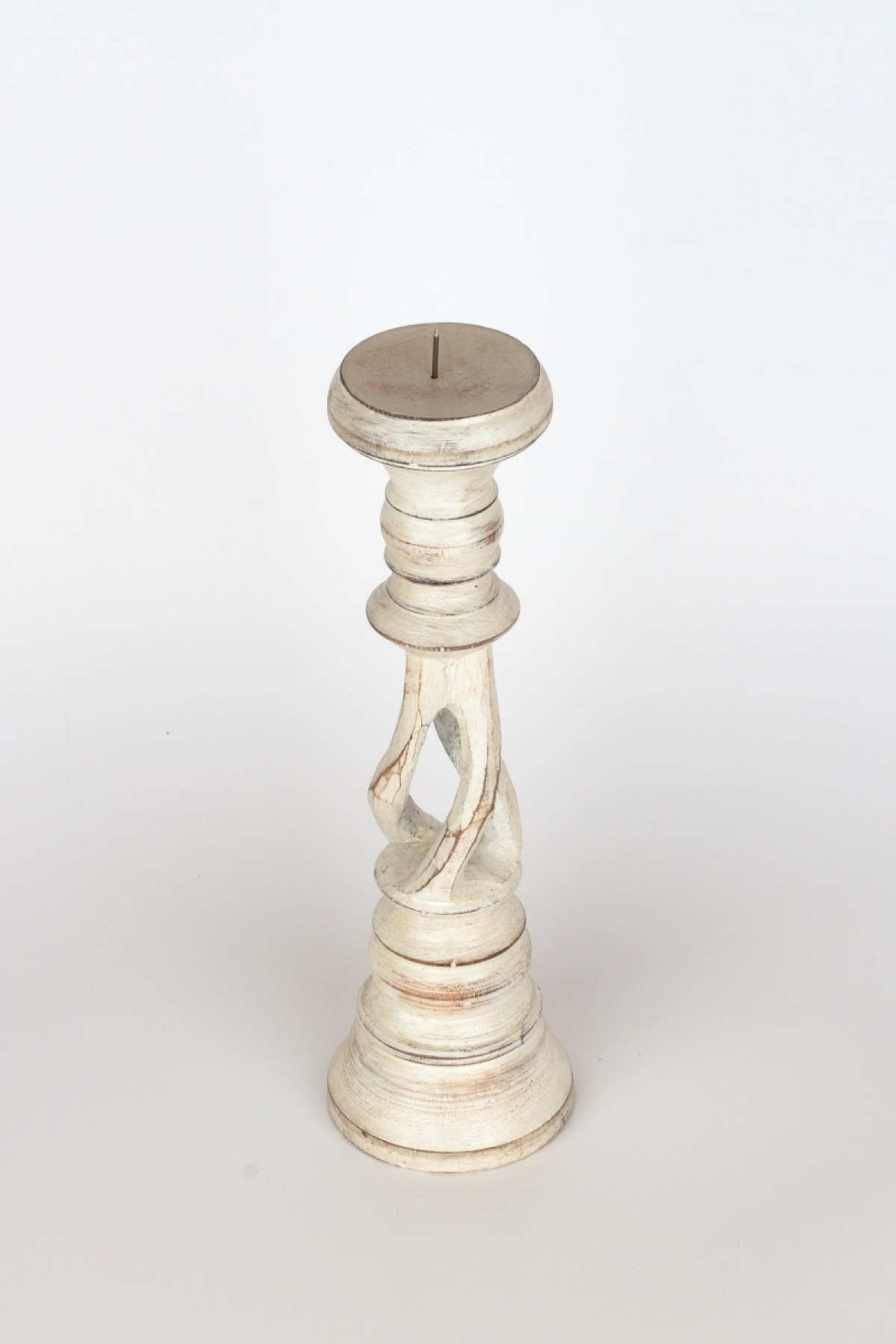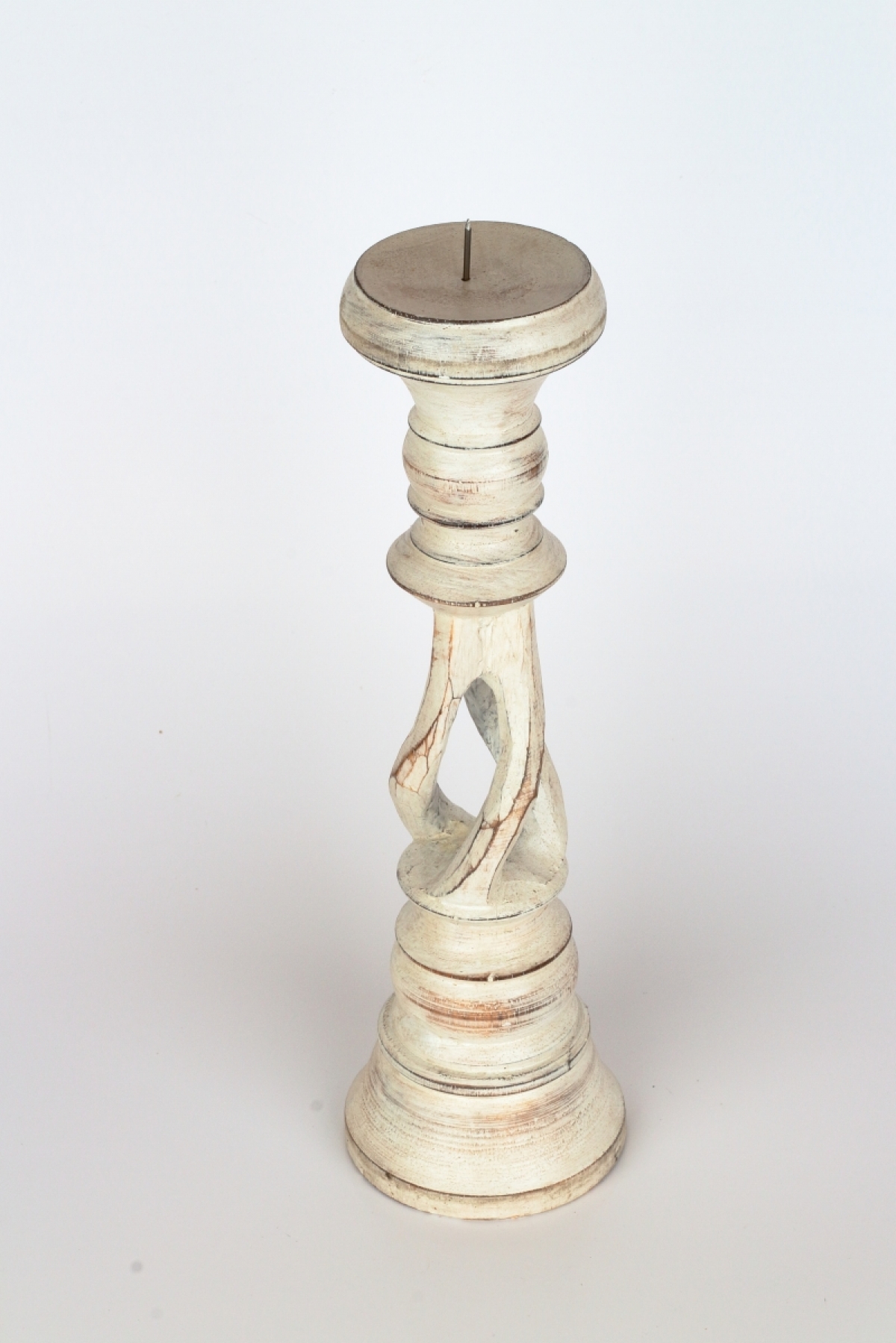 Drevený svietnik s patinou 31cm má krásne vyrezávané tvary a patina a olúpaný vzhľad mu dodáva nádych starých časov.