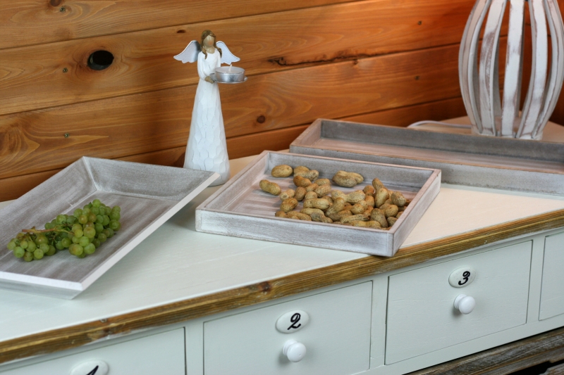 Drevený tácka je univerzálnym kúskom pre sezónne i celoročné dekorácie. Drobné dekorácie budú mať svoje miesto a pekne naaranžované nebudú vyzerať na stolíku či komode ako neusporiadaný chaos.