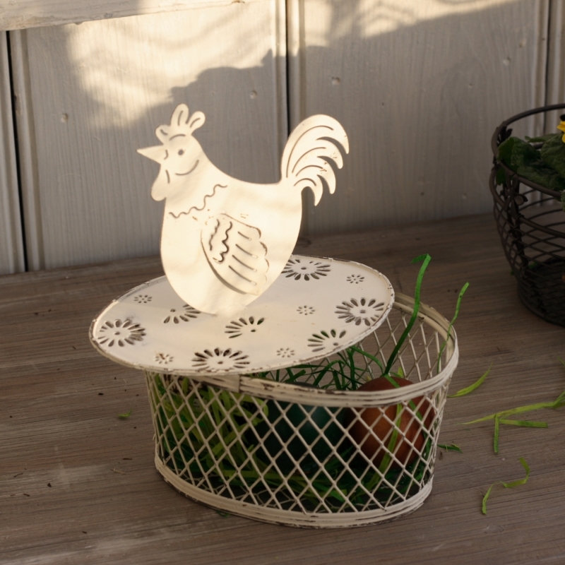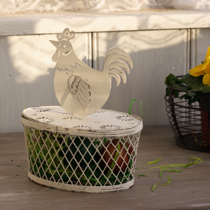 Drôtený kôš na vajíčka s kohútom 17cm Neviete ako si decentne ozdobiť Váš domov na Veľkú noc? Tento drôtený košík s kohútikom Vám pripomenie jar a pomôže zútulnit domácnosť.