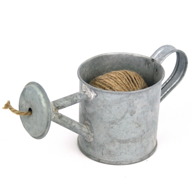 Klubíčko povrázku je ukryté v zinkované kanvičke. Že sa Vám klbko vždy pri práci rozmotať? Alebo nemôžete nájsť zamotaný koniec? Na tieto drobné šlamastiky môžete zabudnú. Povrázok si totiž ťaháte podľa svojich potrieb priamo z výlevky kanvičky. Vtipné, ľahké a praktické, nemyslíte?