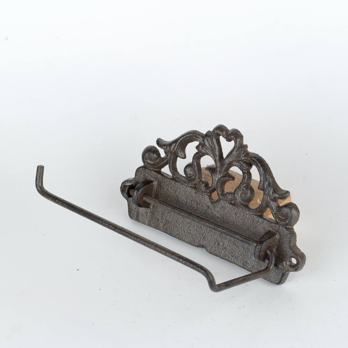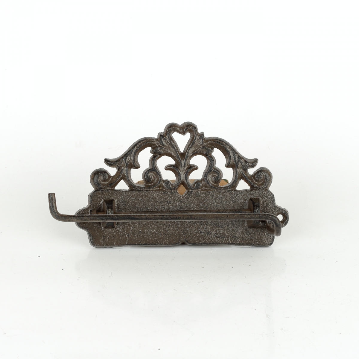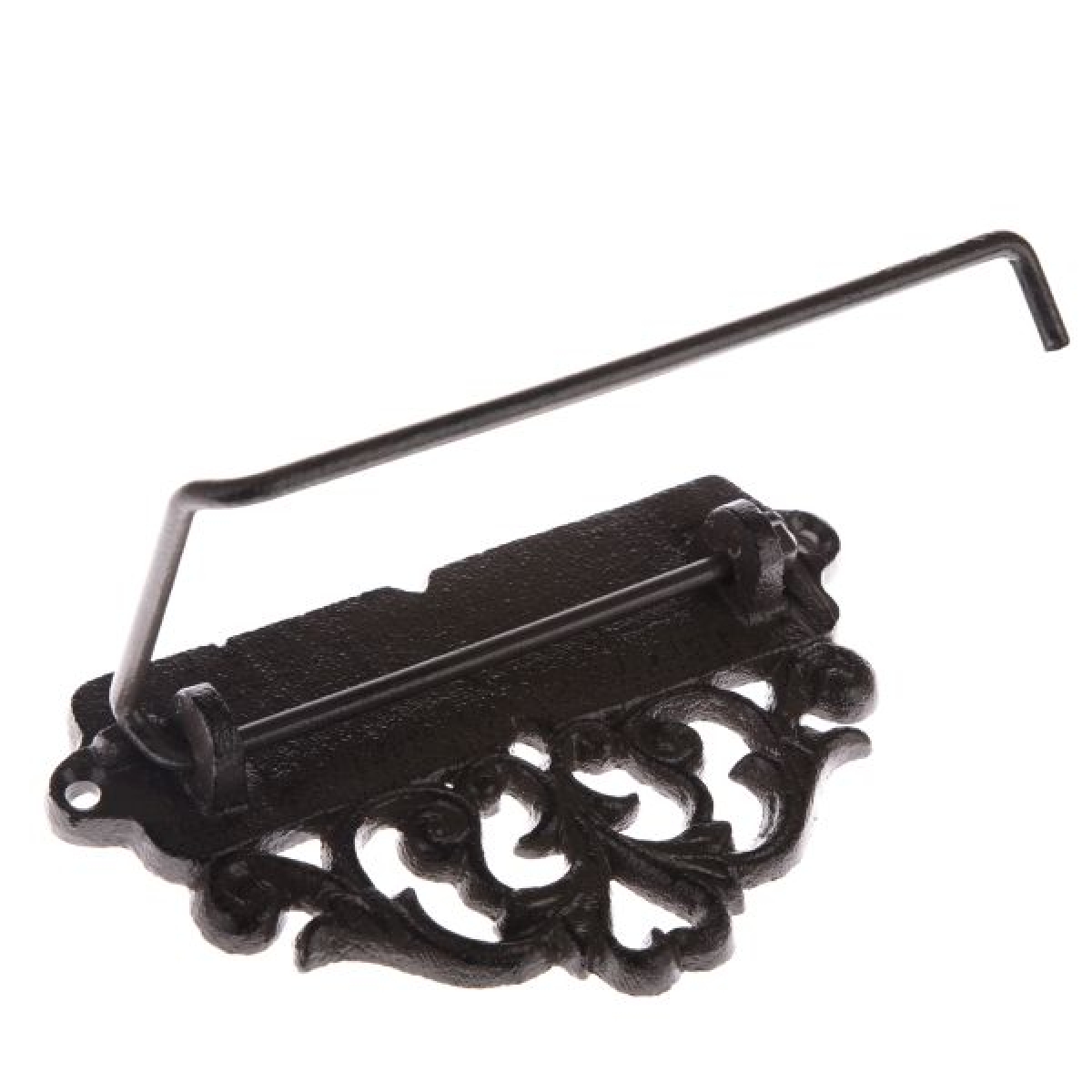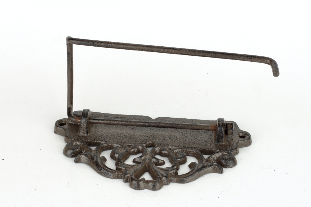 Samotný držiak na toaletný papier je vyrobený z liatiny a záves na ruličku je kovový.