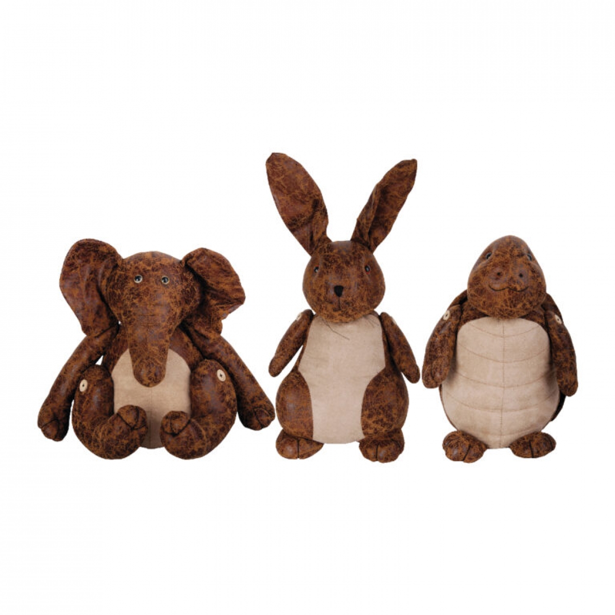 Dverná zarážka z koženky, v podobe zajaca s hnedo-bielou patinou