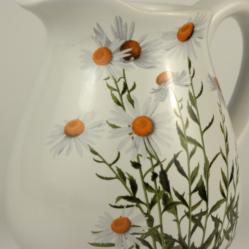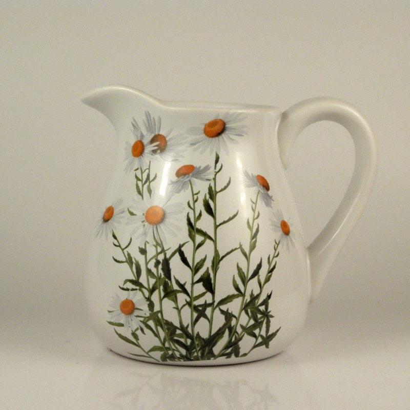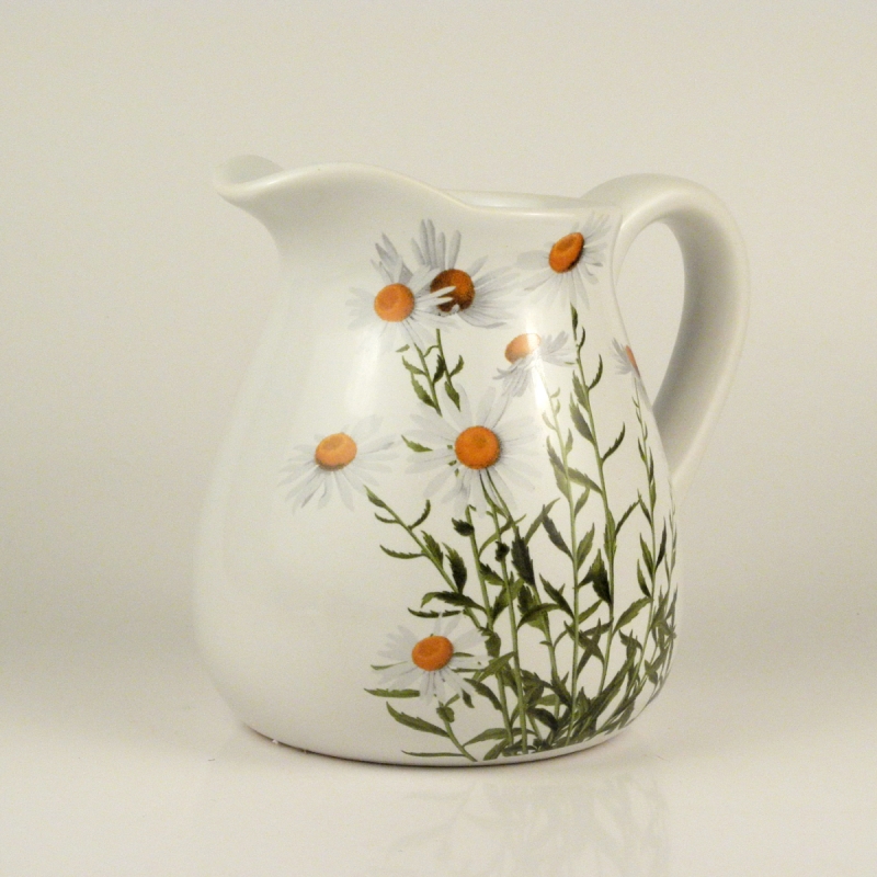 Džbán s dekorem kopretiny má objem 750ml. Poslouží jak v kuchyni, tak jako váza třeba právě na kopretiny.