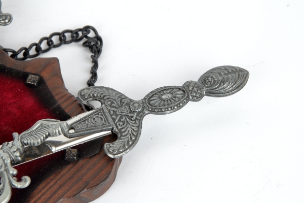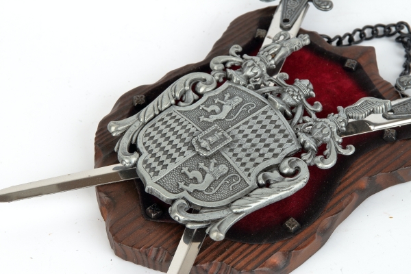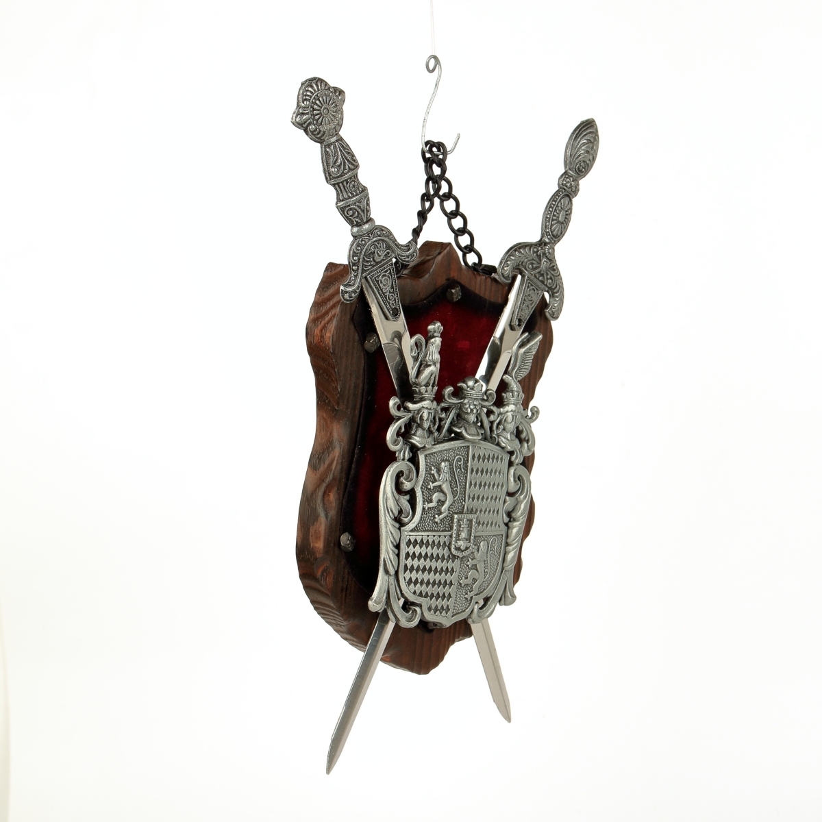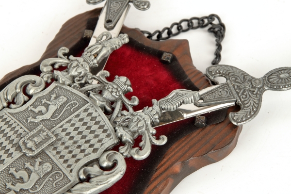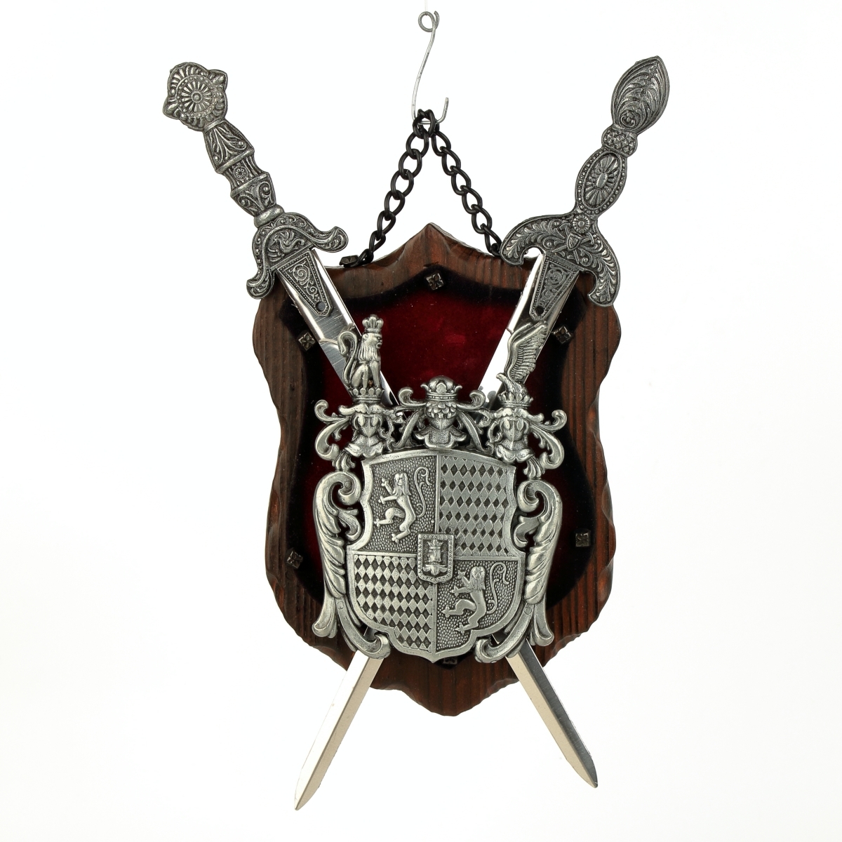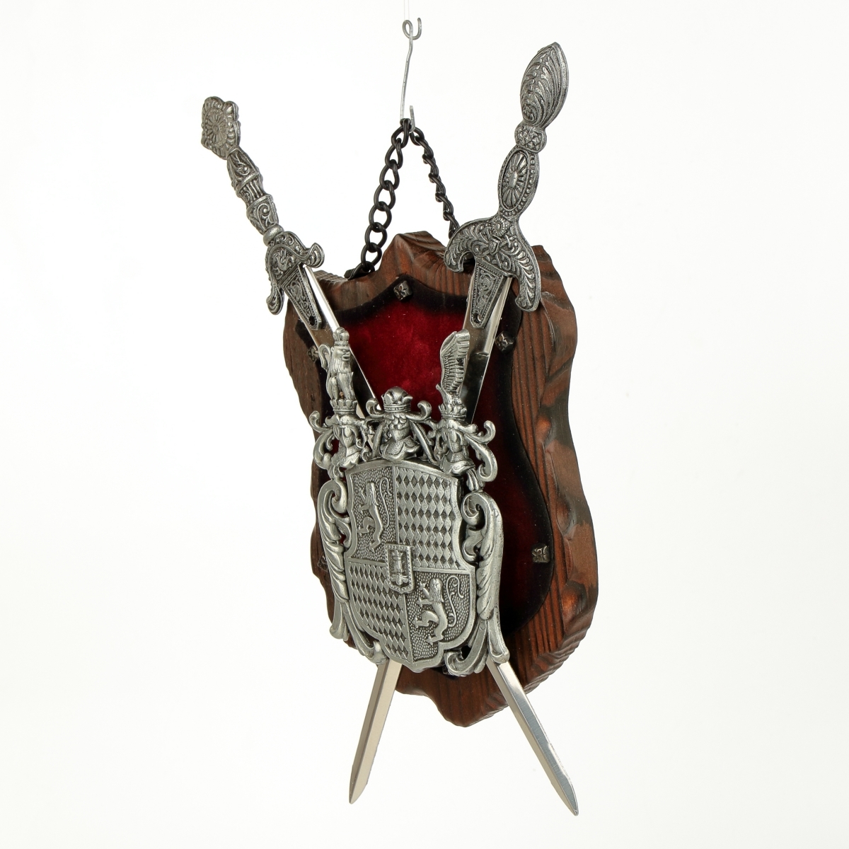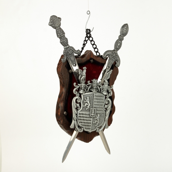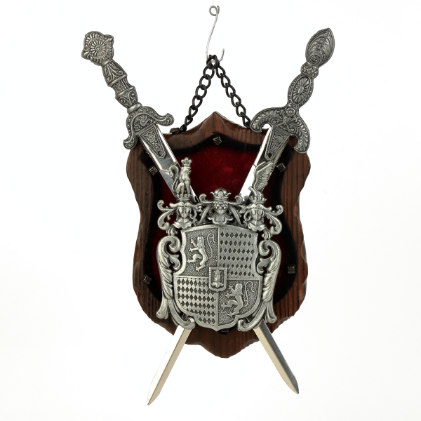 erb na dřevě s červeným sametem - v provedení z šedého kovu