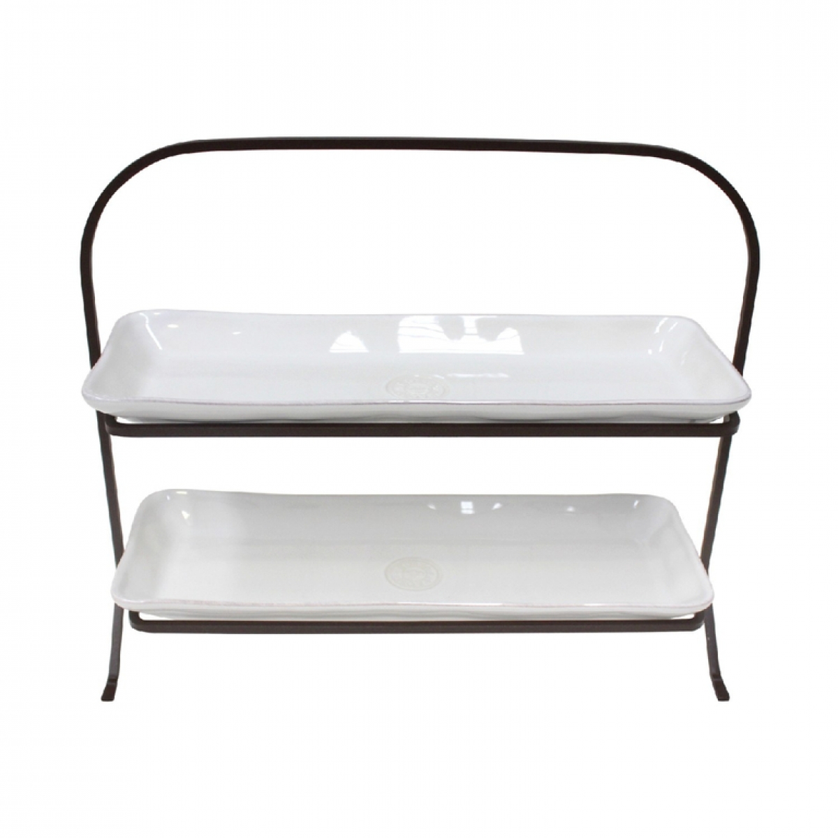 Etažér na cukrovinky dvojposchodový z kovu 37cm od výrobcu COSTA NOVA v miskami v bielej farbe.