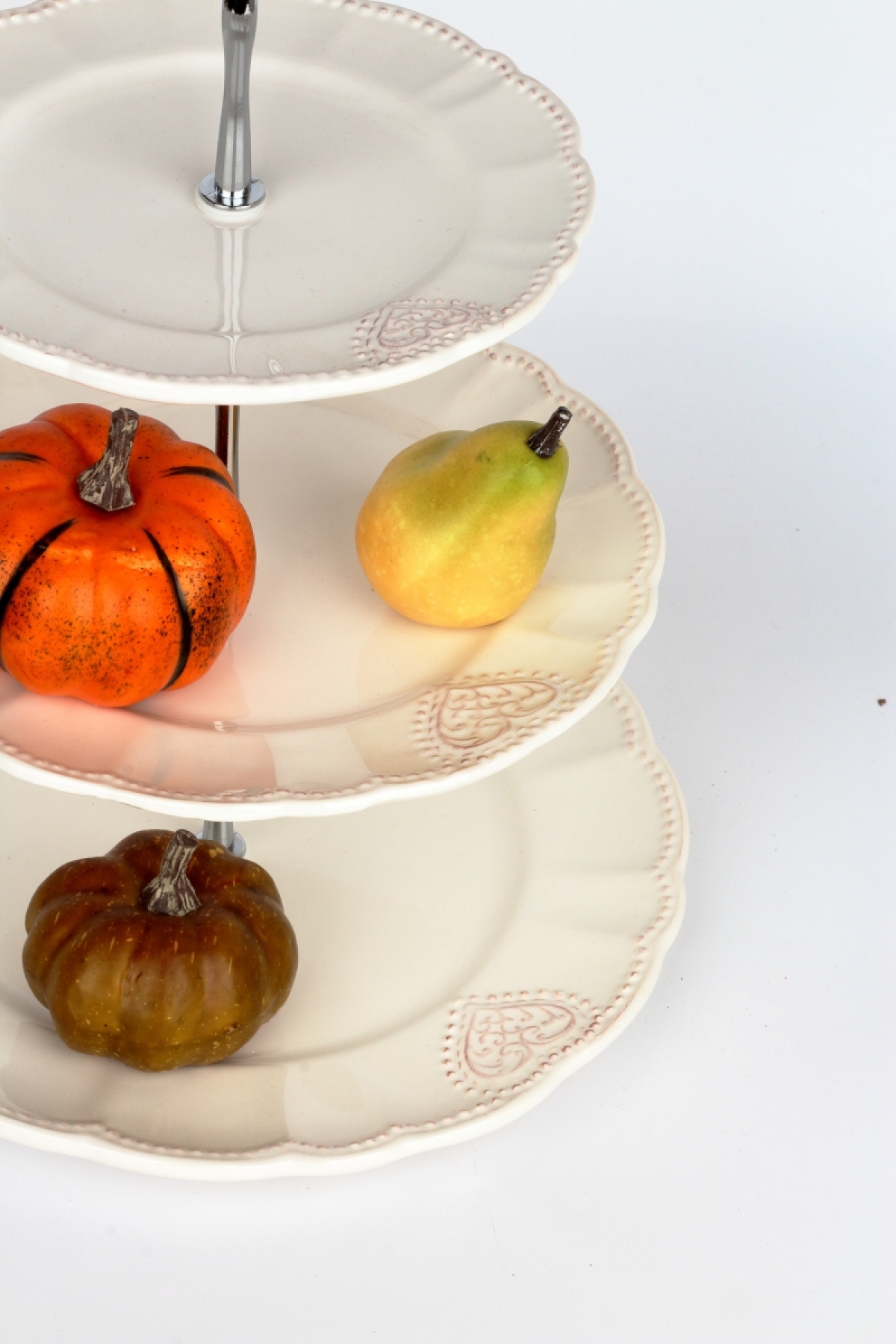 Etažér na cukroví třípatrový je určen na cukroví a ovoce.