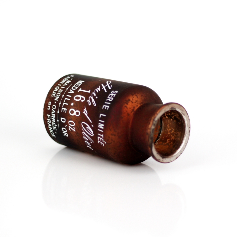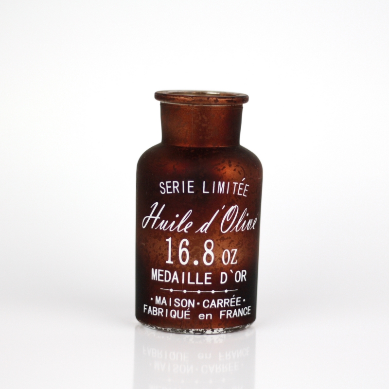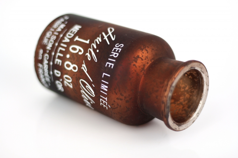Rozměry: průměr hrdla 3,5cm, průměr základny 6cm a výška 12,5cm. Objem 250m.