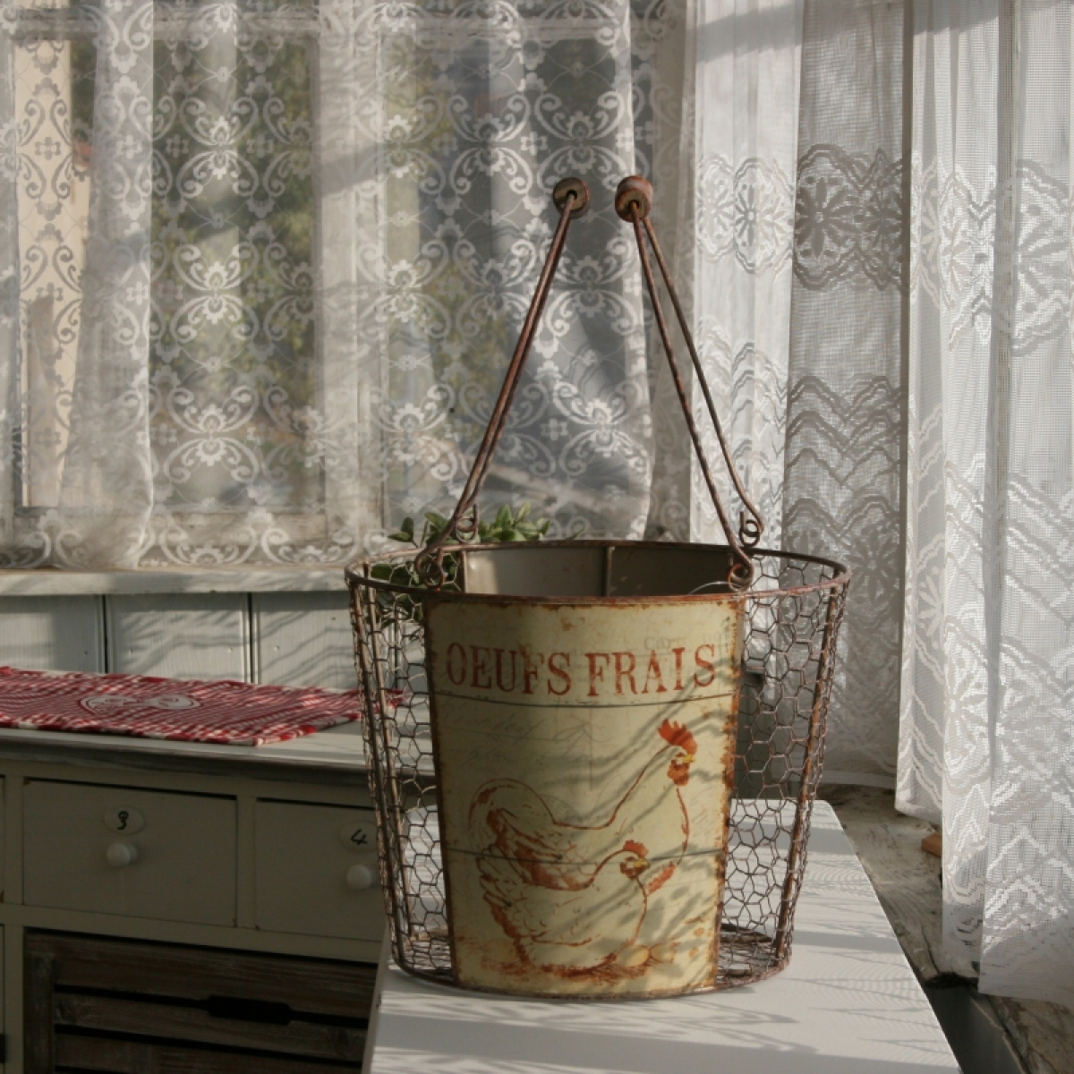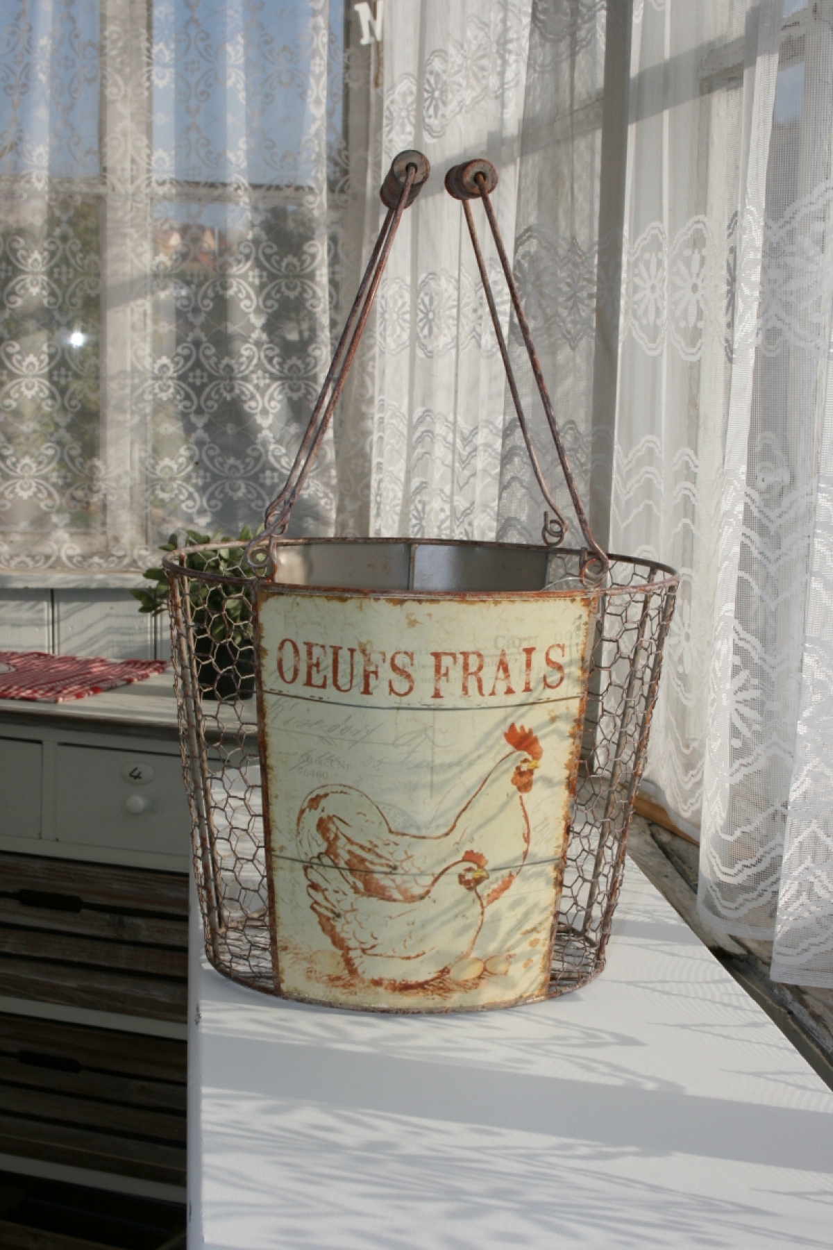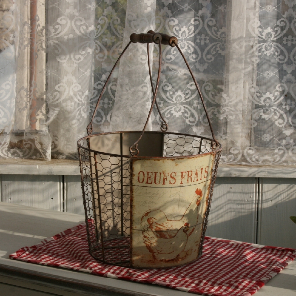 Farmársky košík s kohútom 27,5cm môžete využiť na zber vajíčok, jabĺk alebo akékoľvek úrody zo záhradky. Môže byť aj krásnym obalom na kvety alebo úložným priestorom na veci v domácnosti.