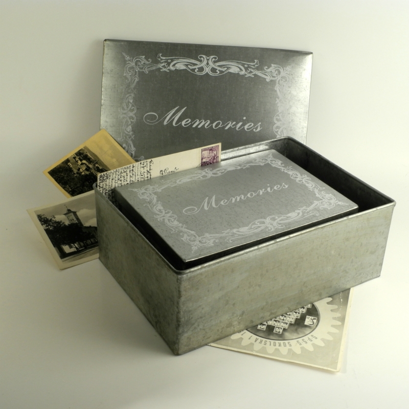 Fotoalbum - box plechový na foto Memories ( 2 kusy) plechové o rozměrech: