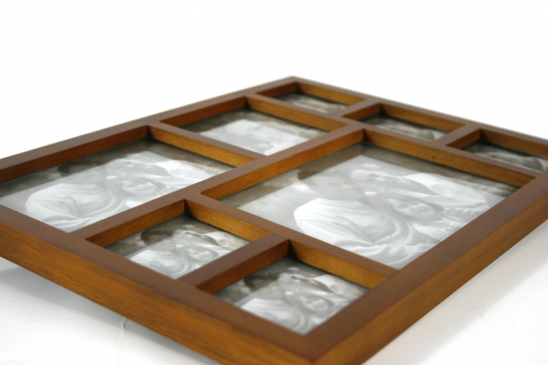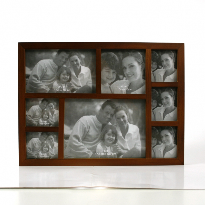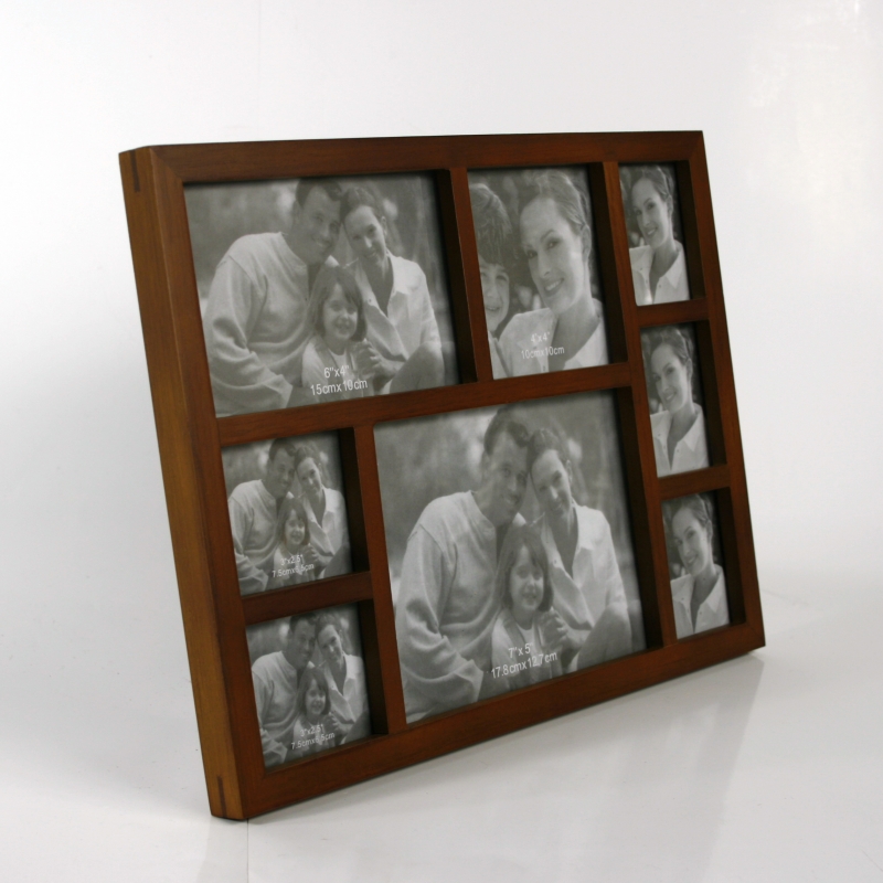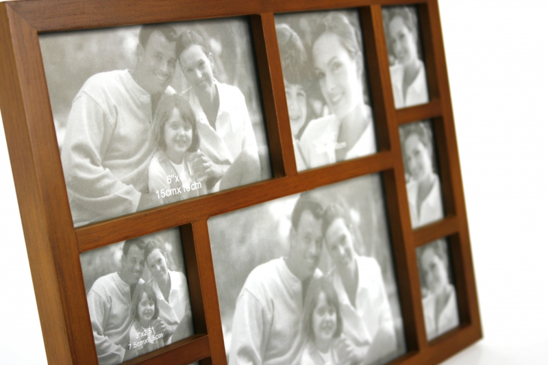 Fotorámik na 8 fotiek prinesie radosť každému , kto má rád fotografie svojich milých , či už ľudí alebo miest , pekne na očiach . Je drevený a má rozmer 33 x 24,5 cm , hĺbka dreva je 2 cm . V tomto veľkom fotorámiku sa nachádzajú tie menších rozmerov - jeden 17,8 x 12,7 cm , jeden 15 x 10 cm a 10 x 10 cm . Ďalej v ňom nájdete dva rámčeky 7,5 x 6,5 cm a tri rámčeky 6 x 7,5 cm . Výsledok zložený z rôzne veľkých fotiek vyzerá veľmi zaujímavo .