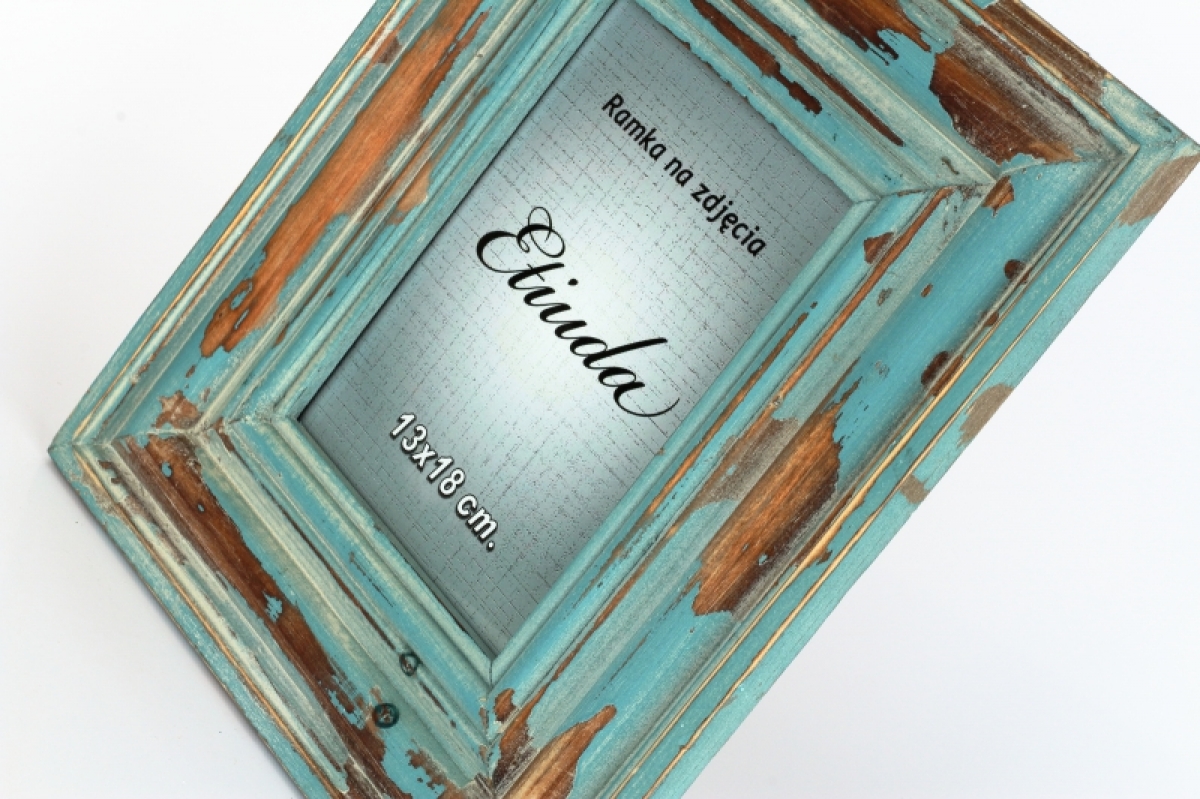 Fotorámček na fotografiu 13x18cm tyrkys s patinou 31x25,5cm je miestom pre Vaše spomienky z ciest, životných udalostí alebo na fotografie Vašich blízkych. Môžete sa obklopiť nespočetným množstvom dekorácií, ale len fotografie dodajú interiéru osobité čaro a kus Vašej duše. Myslite na to, vytlačte krásne fotografie a ukážte ich svetu!