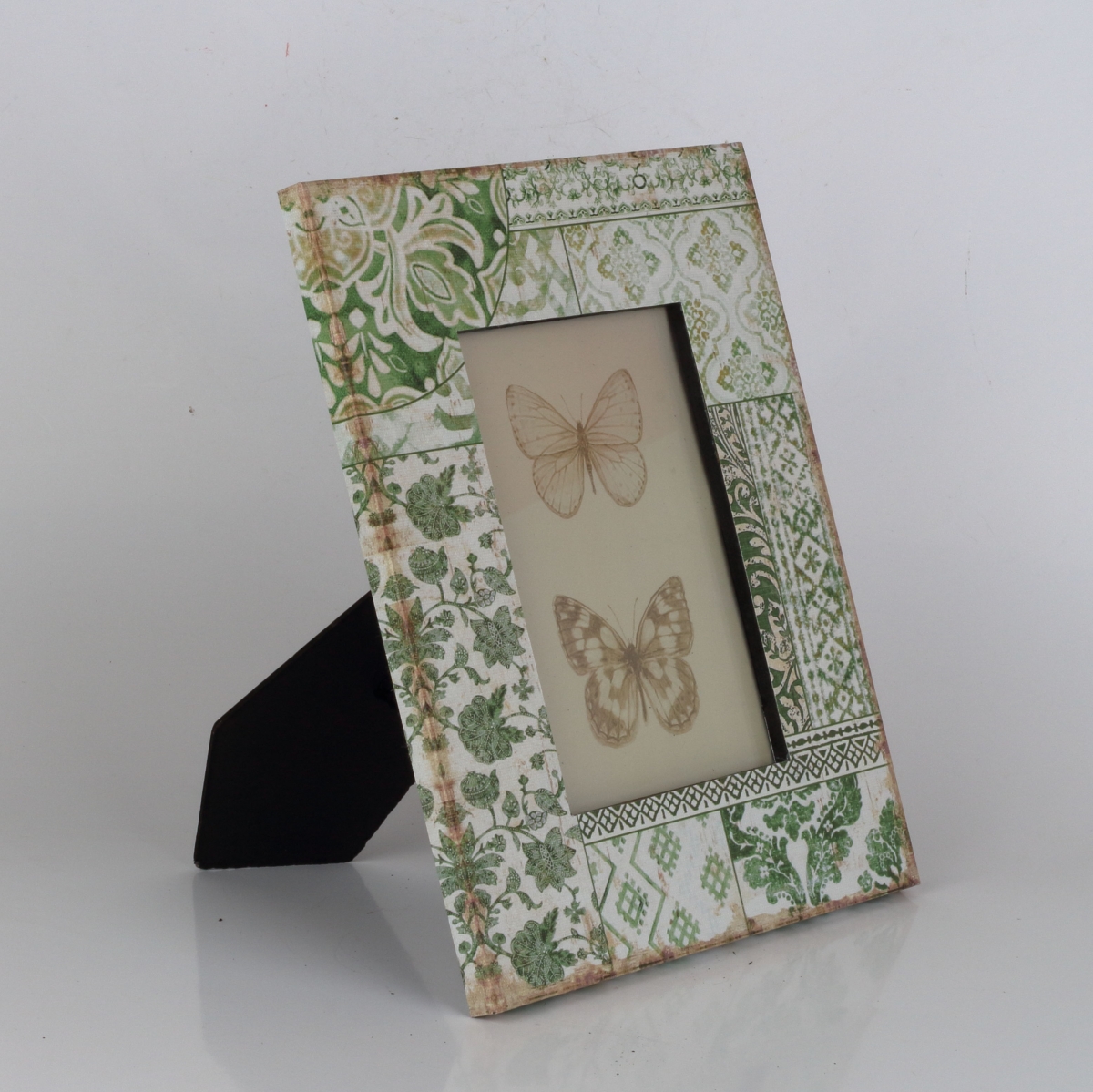 Fotorámik je vyrobený z dreva a má jemný, vkusný dekor.