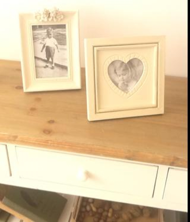 Fotorámik krémovej farby o rozmeroch 19x19cm.