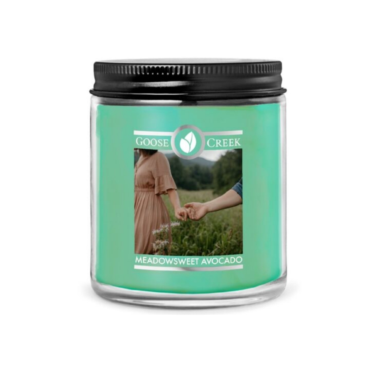Goose Creek aromatická sviečka MEADOWSWEET AVOCADO s jedným knôtom a dĺžkou horenia až 45 hodín.