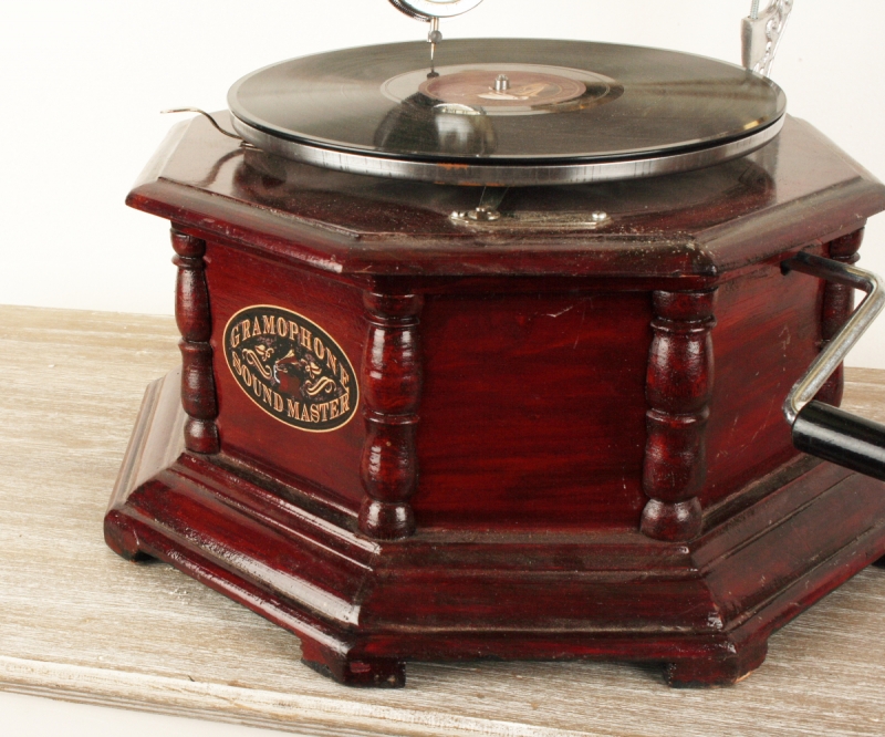 Model gramofonu poslouží jako luxusní dekorace. Reprodukce retro gramofonu je spíše pro pobavení přátel a rychlost otáček je závislá na aktuálním natažení klikou, ale o to více své přátele pobavíte.