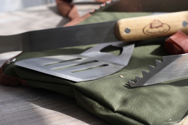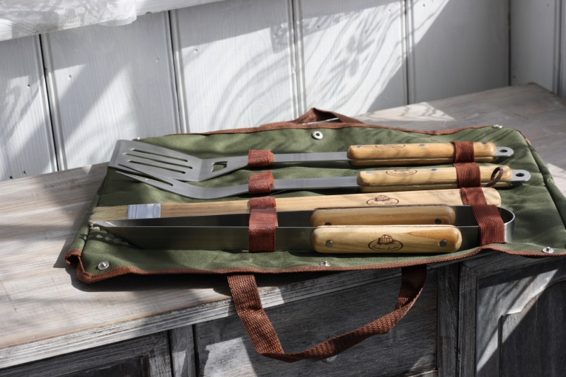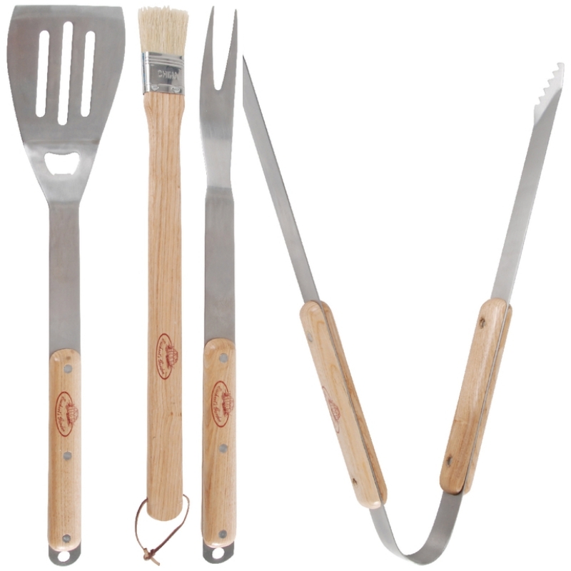 Všetky grilovacie pomôcky sú dostatočne dlhé a majú extra dlhá drevená madlá pre väčší odstup od žeravých uhlíkov.