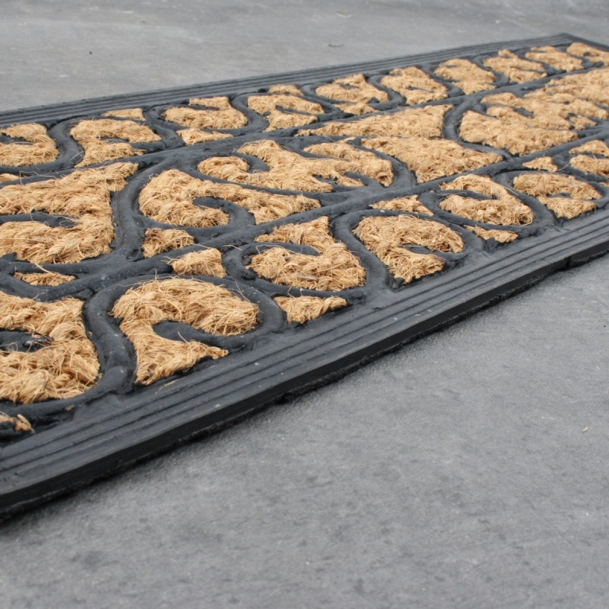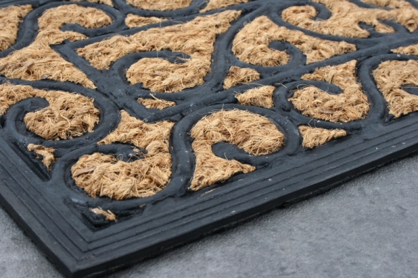 Gumová rohožka je zdobena ornamenty. Je ideální před vchodové dveře, ale třeba i ke dveřím na terasu.