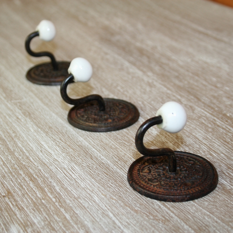 Háčik kovový s porcelánovou úchytkou 6x5,5cm