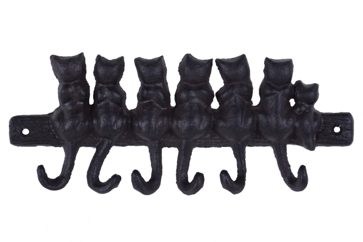 Liatinový nástenný vešiak je zdobený mačkami, háčiky TVOC ich chvostíky. Vtipné poňatie klasického věšákz ocenia nielen milovníci mačiek, ale aj deti. Uvidíte, s akou radosťou si budú svoje veci upratovať na miesto.