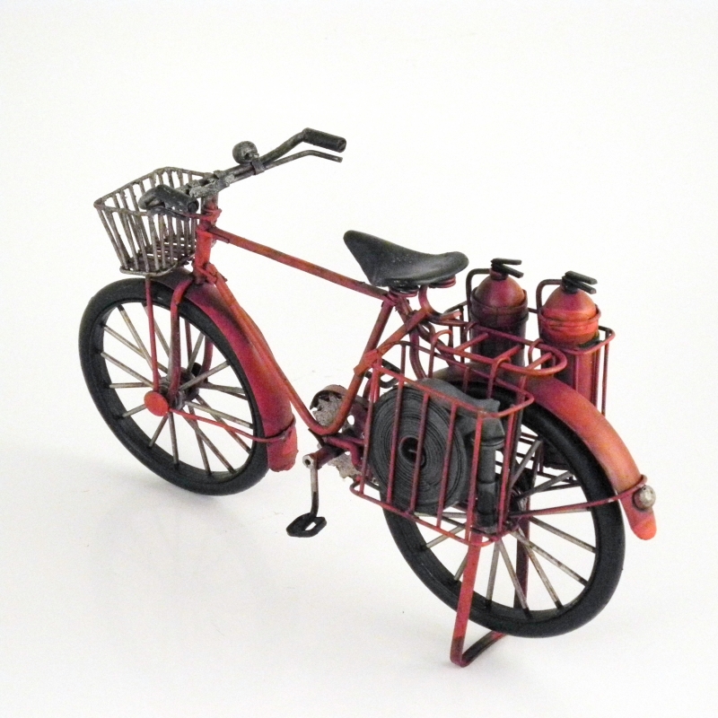 Celý výrobek je vyroben z kovu. Včetně smotané hadice, proudnice. Na bočním nosiči má dva hasící přístroje.Ráfky kol jsou osazeny gumovým kroužkem (pneumatikou).