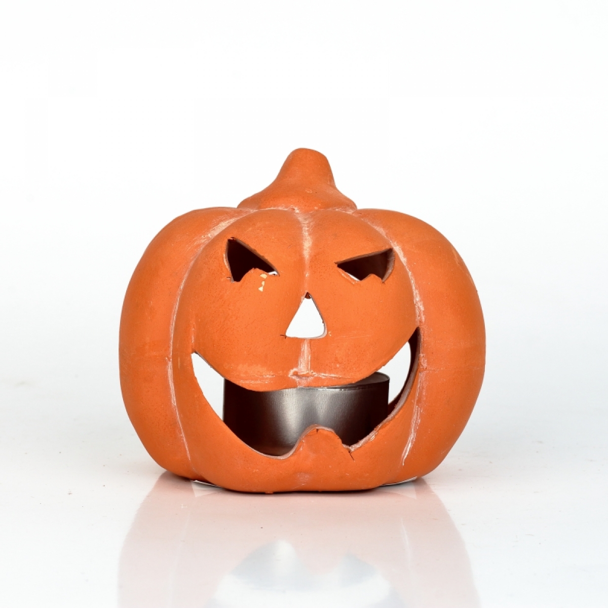 Helloween sviatok - svietnik tekvica je vyrábaný z pálenej hliny.
