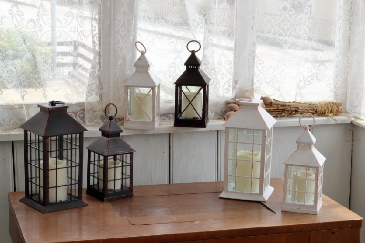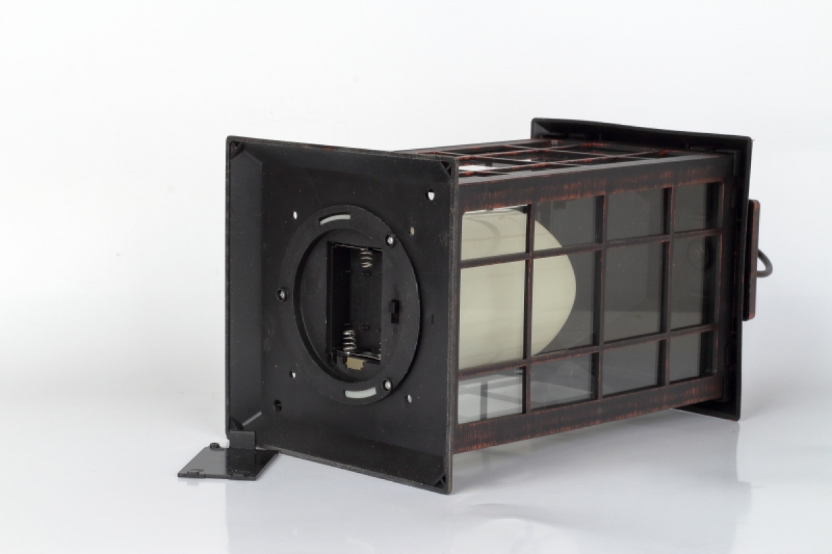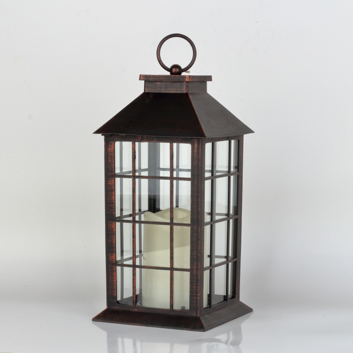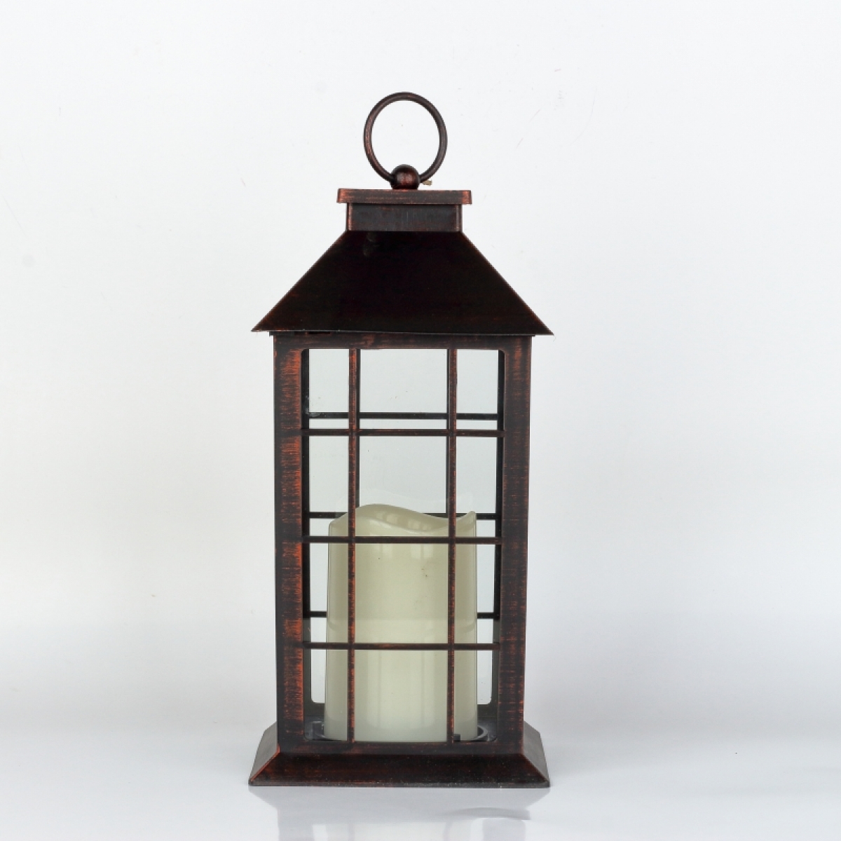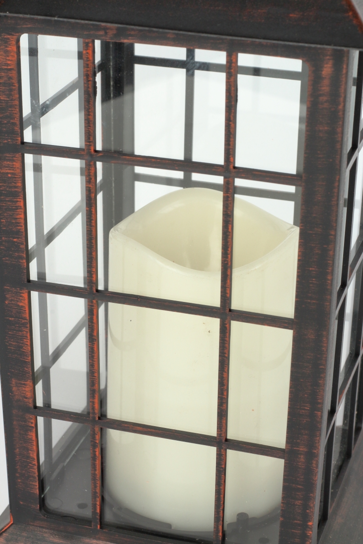 Dokonalá imitácia plechové lucerny s horiace sviečkou s priemerom 5,5 cm a výškou 7cm.