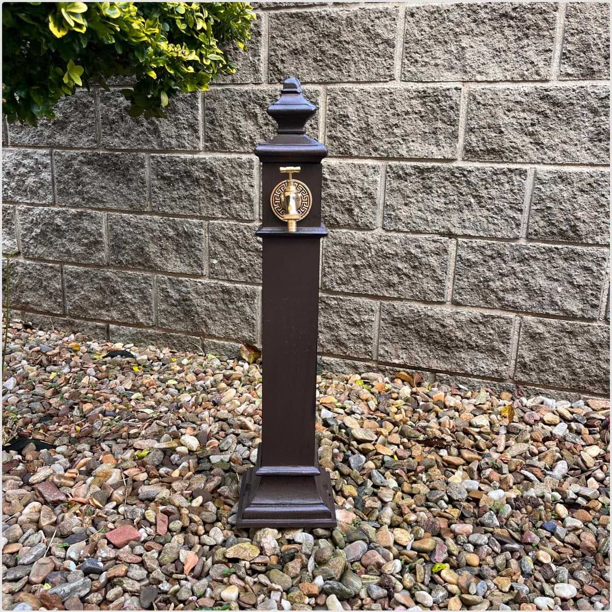 Stĺpik „Rustique Flow“ kombinuje rustikálny vzhľad a praktickú konštrukciu. S výškou 86 cm ponúka pohodlný prístup k vode bez nutnosti ohýbania. Farba hnedého odtieňa dodáva charakter a dobre zapadne do prírodného prostredia záhrady aj pri dome.