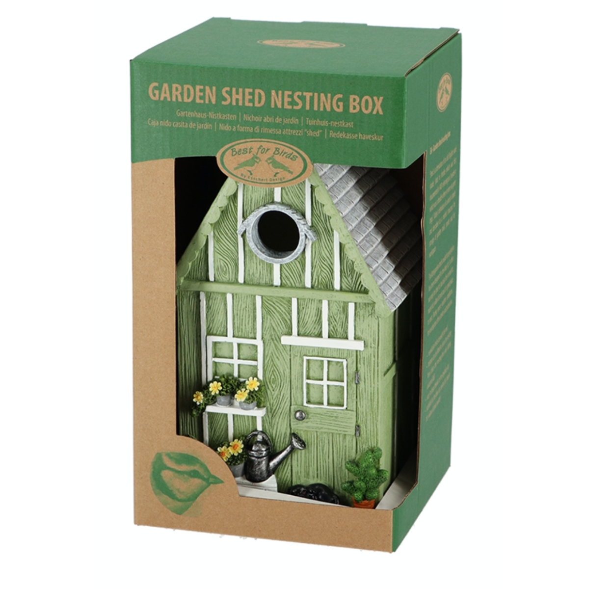 Hniezdiaca búdka pre vtáky má vetracie otvory pod strechou. Dno je možné zdvihnúť pre upratovanie domu (búdku čistite iba na jeseň).