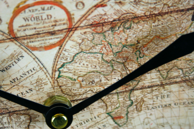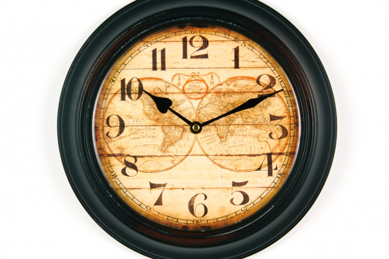 Hodiny 30cm strong> pologule sú klasické interiérové hodiny v retro štýle. na ciferníku je vyobrazená mapa.