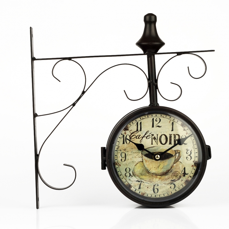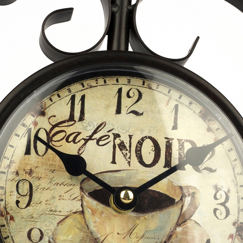 Hodiny do restaurace Retro Café Noir oboustranné s konstrukcí 31x30cm a průměrem ciferníku 14cm.