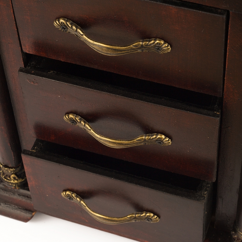 Vysoké stojanové hodiny majú tri priehradky pre šperky, či iné drobnosti.