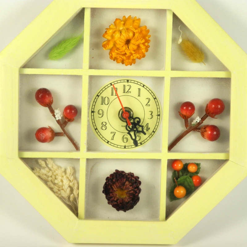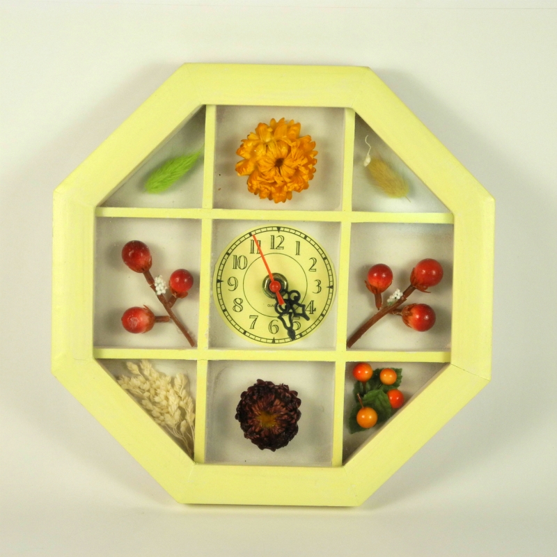 Hodiny nástěnné ve tvaru osmiúhelníku.