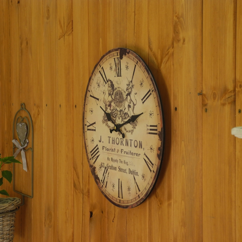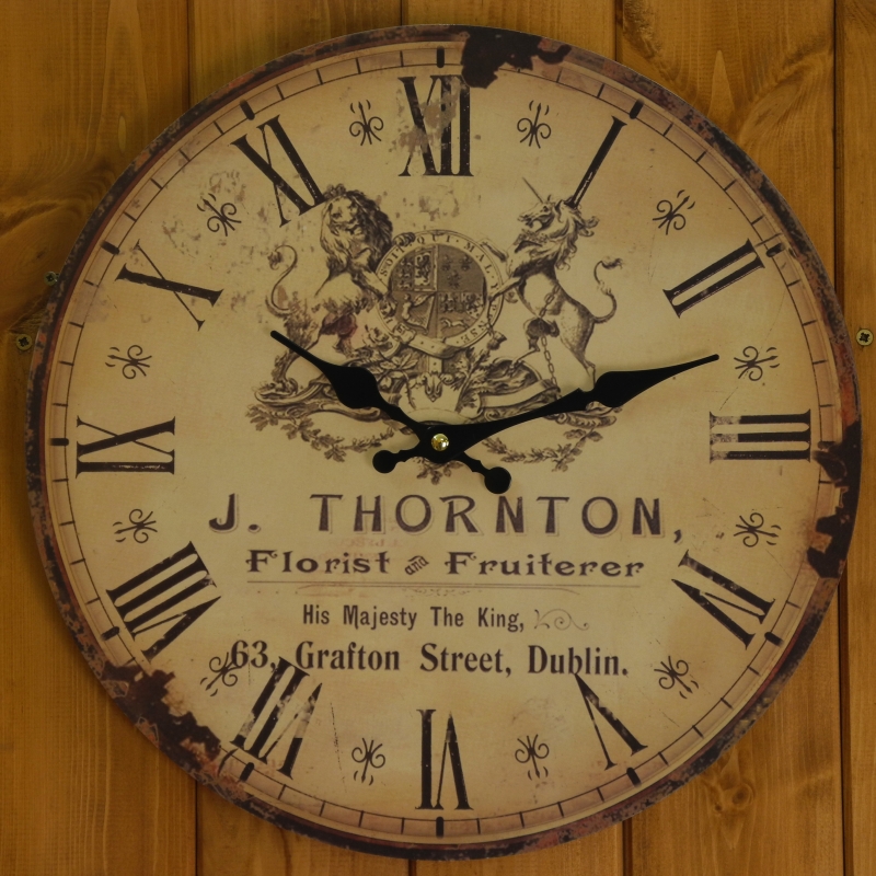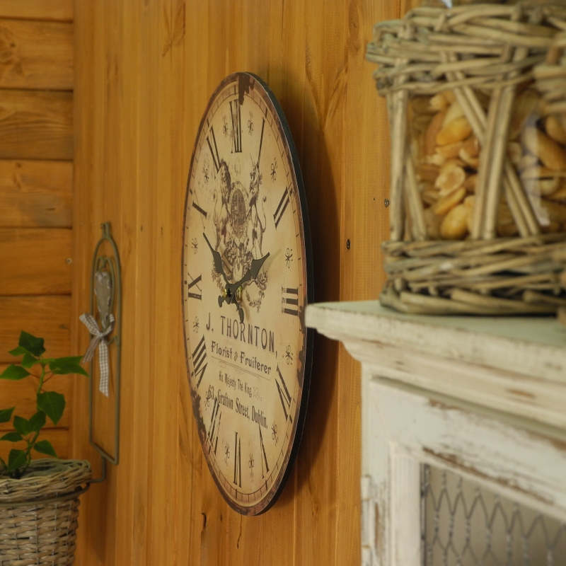 Patří k nádherným retro kouskům, které budou stylově doplňovat podobně vyhlížející interiéry. Hodiny s římskými číslicemi jsou zdobeny anglickými nápisy a motivy.