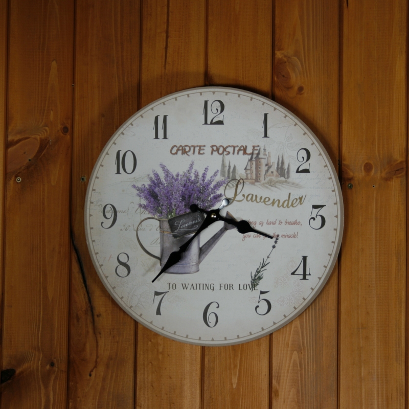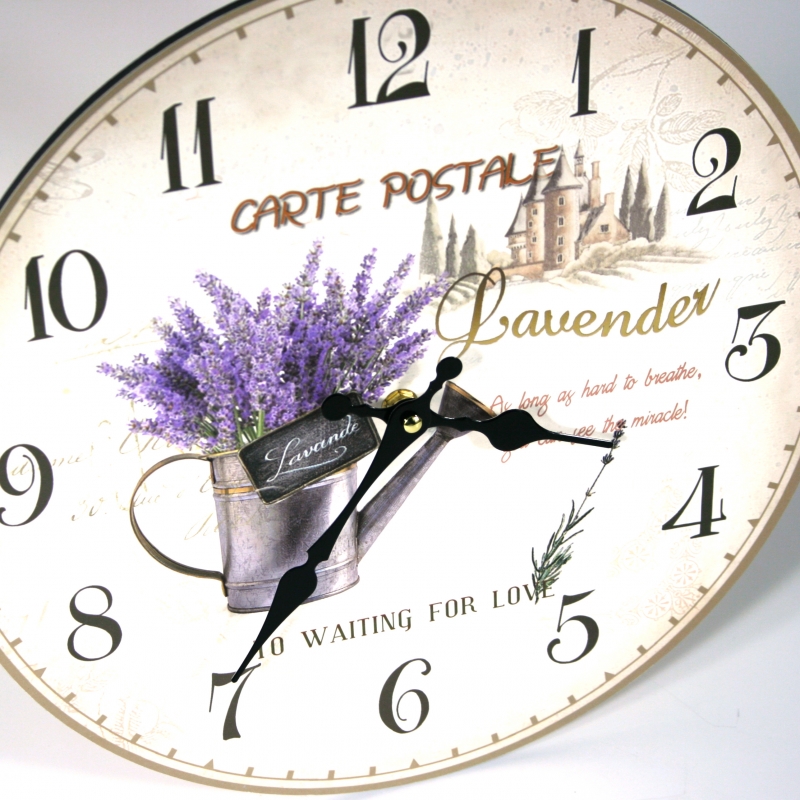 Dekor levanduľa je nestarnúci . Preto aj ciferník týchto hodín zdobia kanvička plná voňavej levandule . Arabské číslice sú dosť výrazné , presne tak , ako tomu má u správnych hodín byť .