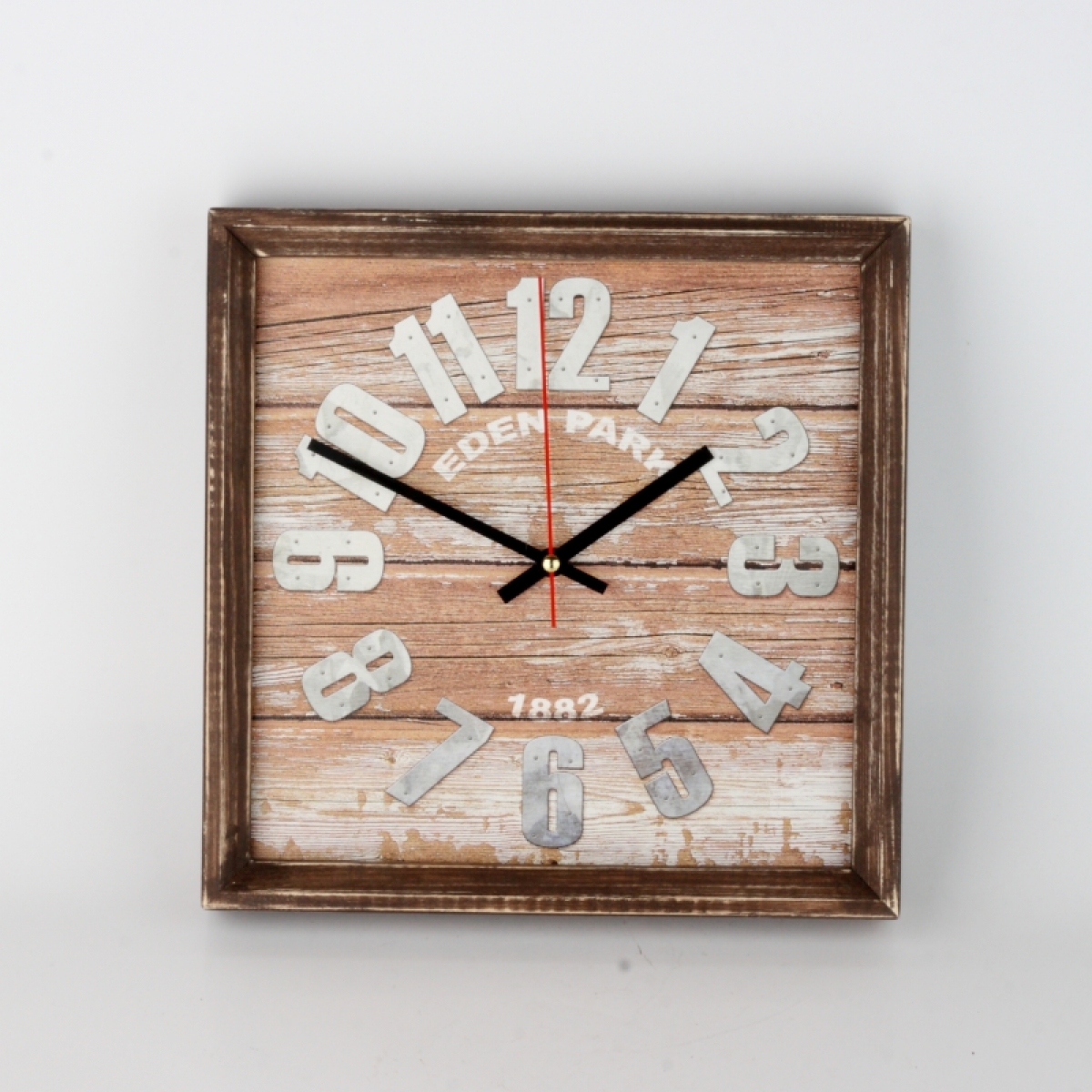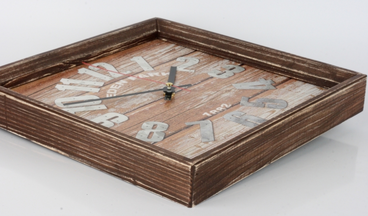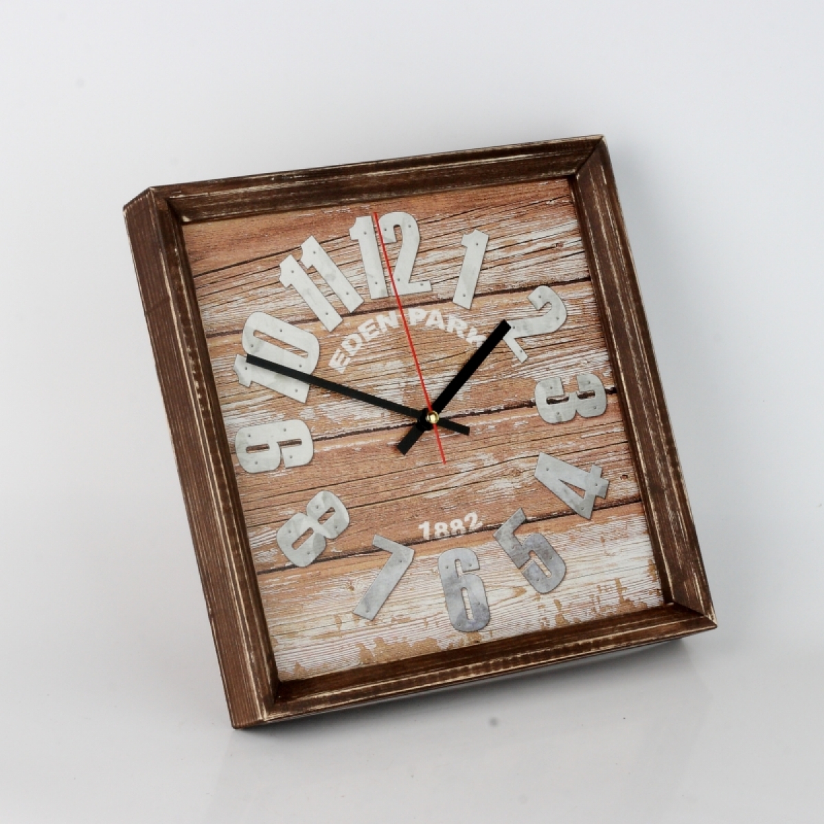 Hodiny nástenné Eden park 28x28cm v rustikálnom štýle nechávajú vyniknúť typickú krásu dreva a jeho kresby.