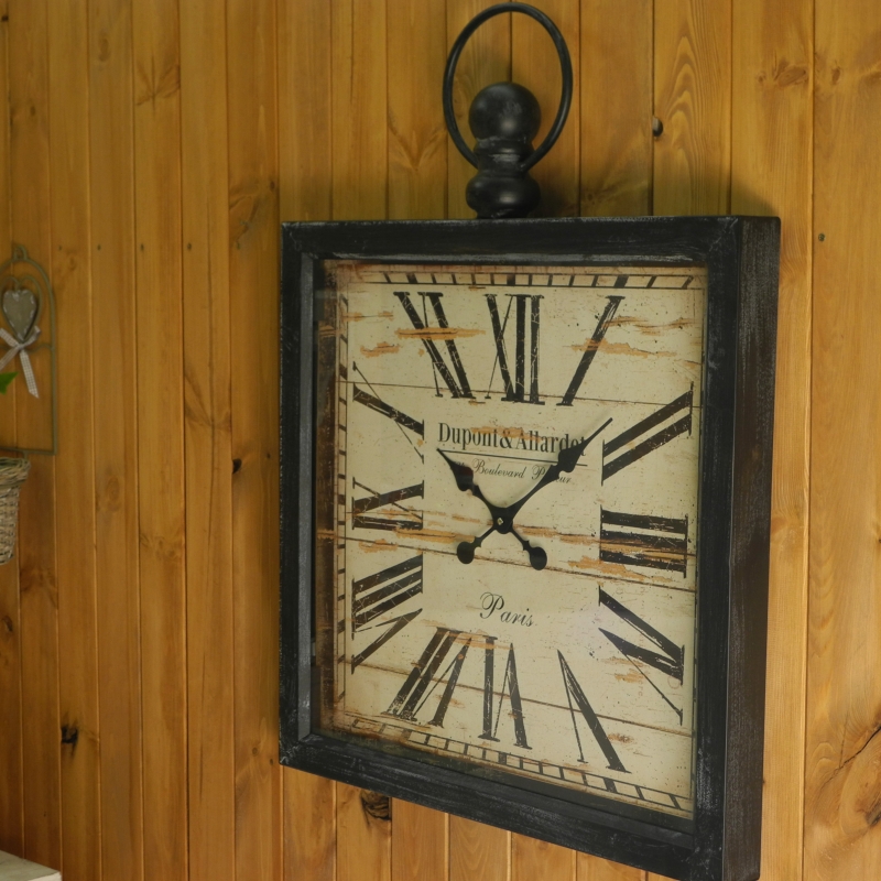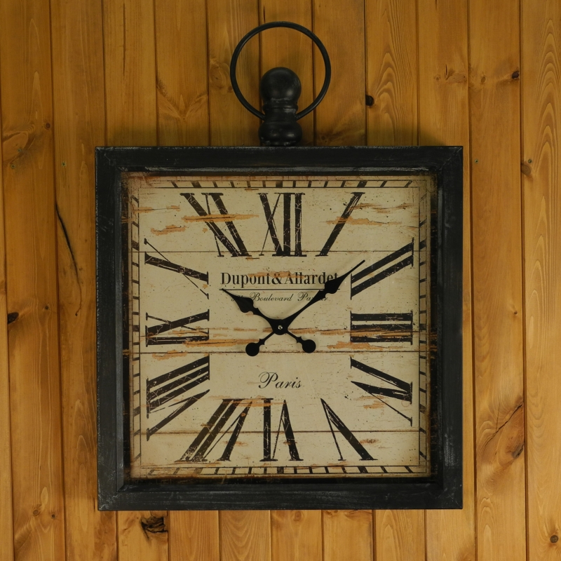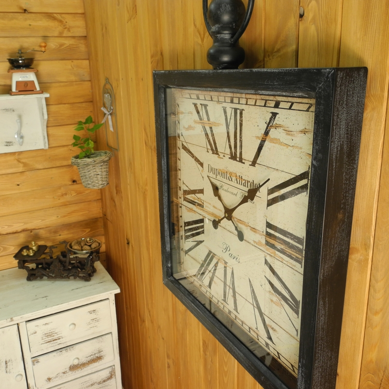 Hodiny nástenné majú rozmer 60x80 cm a hĺbku 6cm. Predstavujú typ ťažkých masívnych kovových hodín. Svojím štvorhranným tvarom dokazujú, že nielen tradičný kruhový tvar je pre hodiny ten pravý. Opak je pravdou, tieto štvorhranné hodiny zaujmú naozaj každého, kto je uvidí. Hodiny v retro štýle voňajúcim starú Francúzskom majú príjemne veľké rímske číslice a zaujímavo riešenú hornú časť.