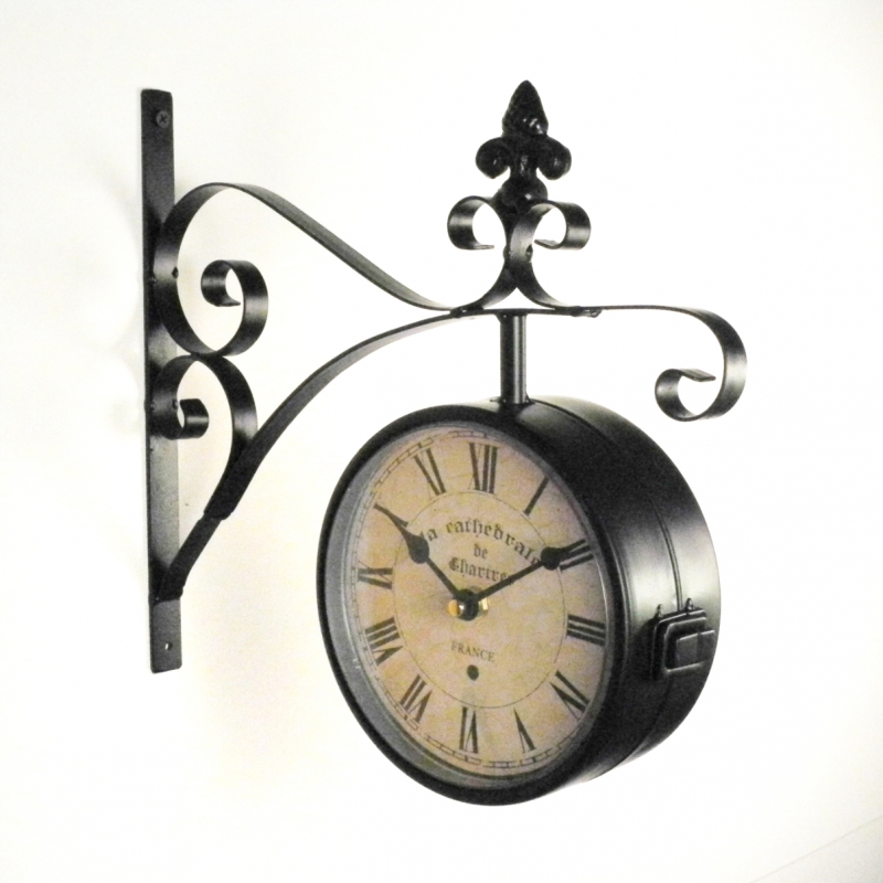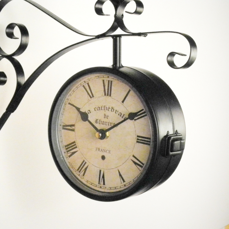 Materiál: kov, plastové sklíčko, strojek hodin Quartz. Interiérové hodiny, které je možné umístit i ven, například pod zahradní pergolu.