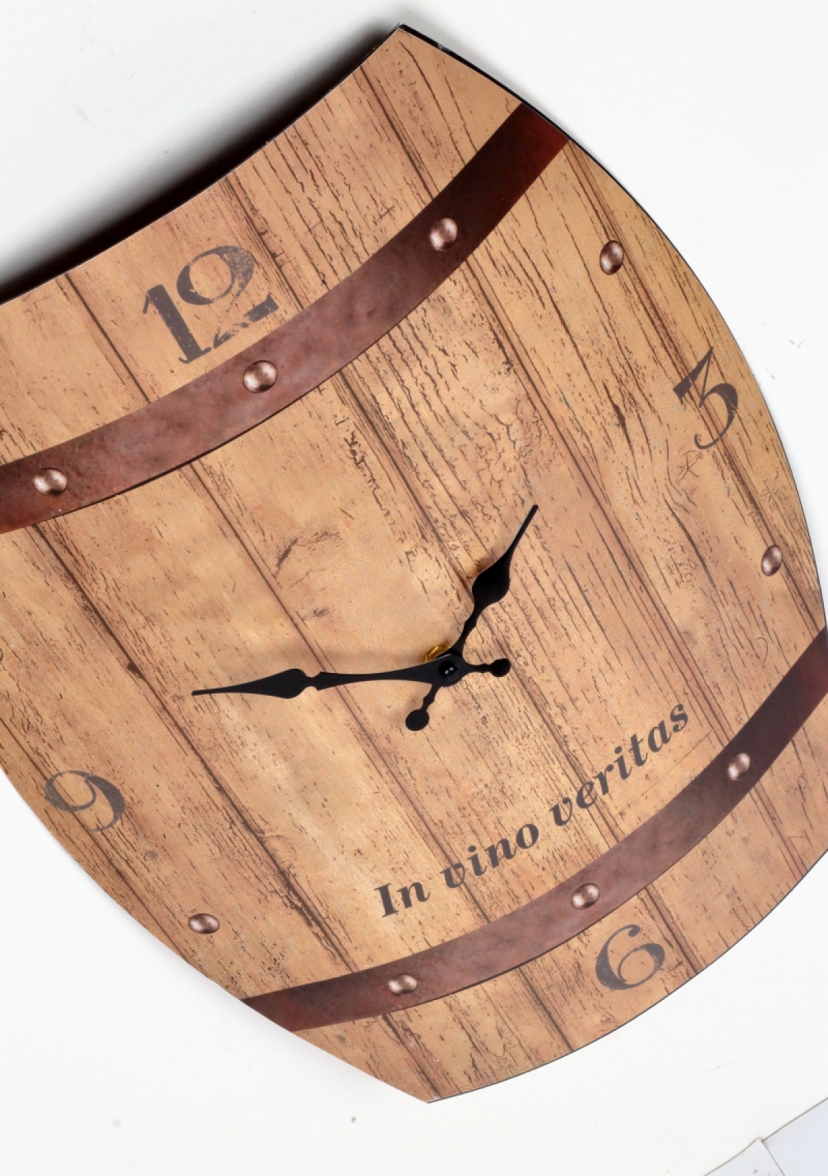 Hodiny v tvare suda na víno sa skvele hodí do rustikálne zariadeného interiéru, vínnej pivnice, ale aj reštaurácie, baru či vinotéky.