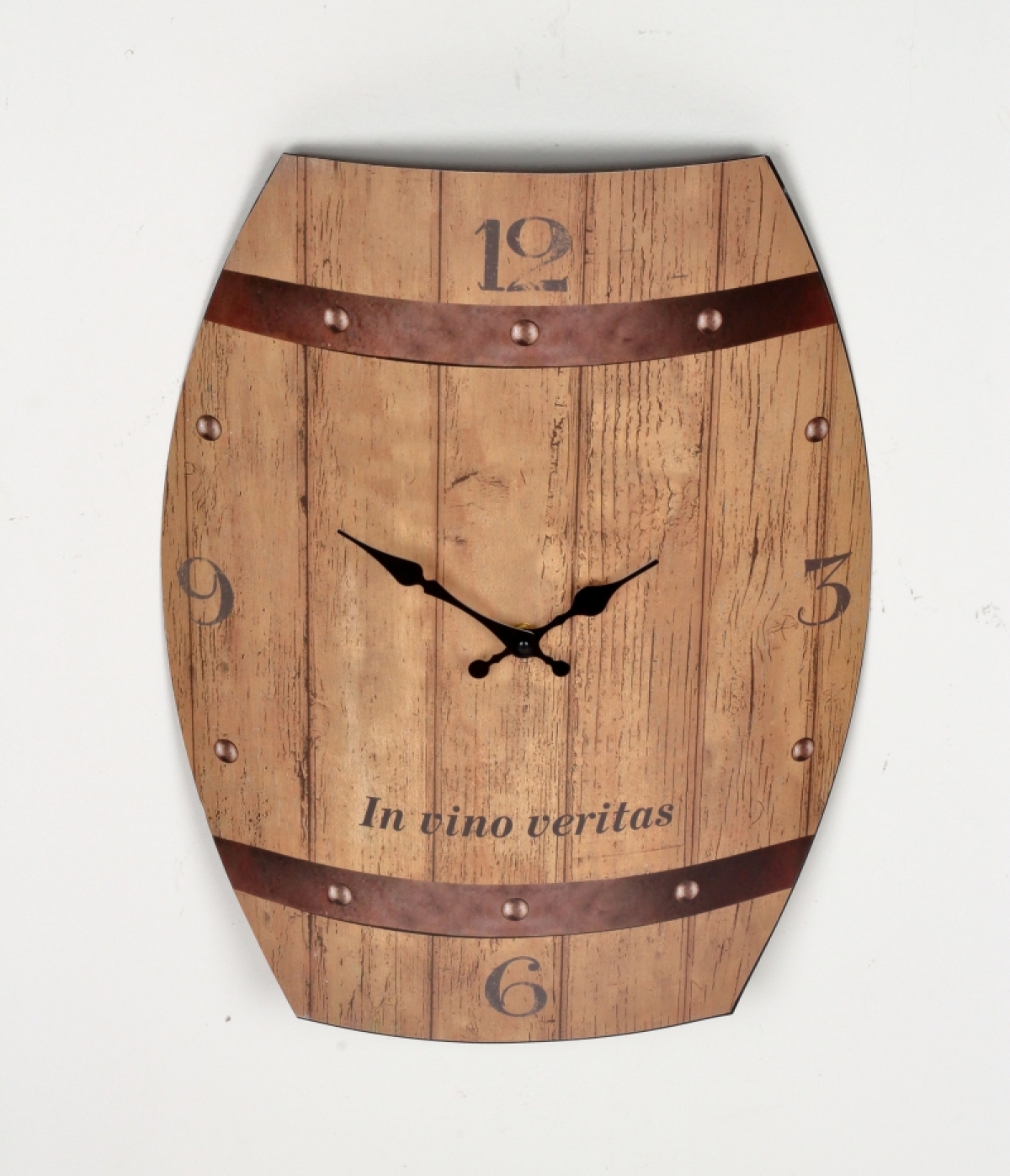 Hodiny nástenné plechové sud In vino veritas 50x38,5cm